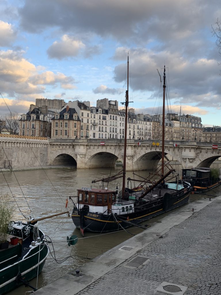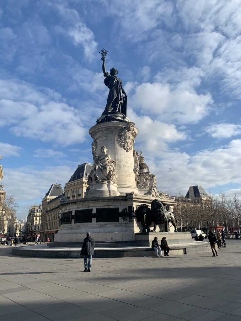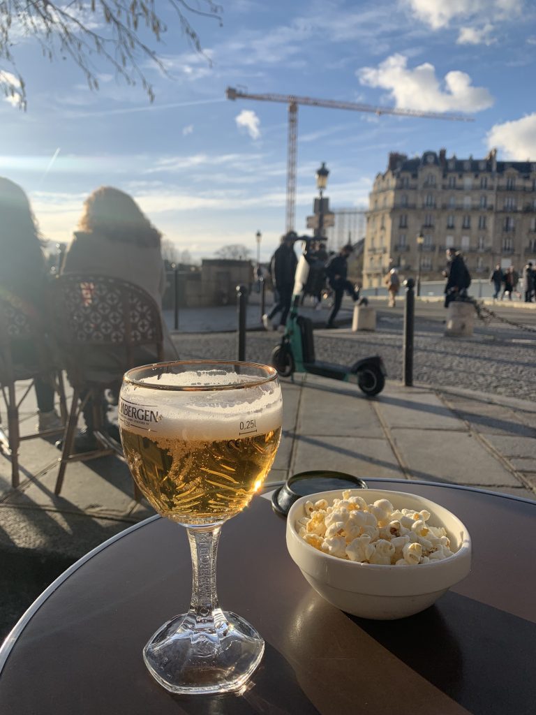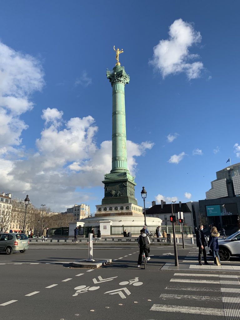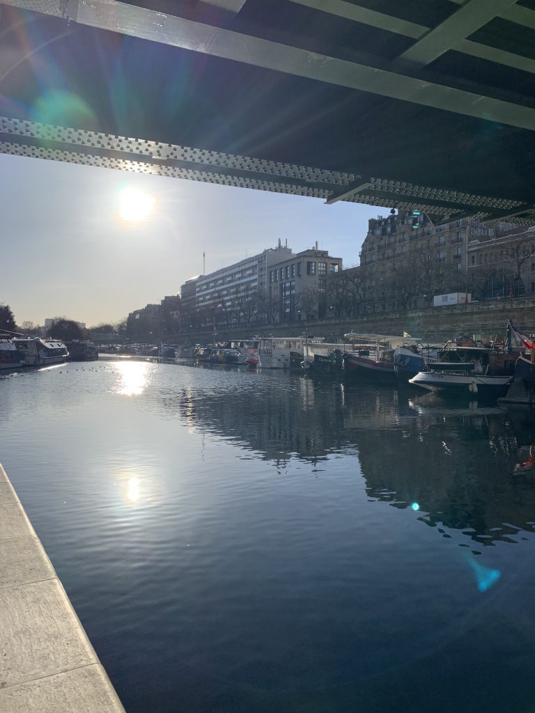 Nach ein typisch französisch eher mageren Frühstück mit etwas Baguette und Kaffee verlasse ich mein schönes Zuhause mit dem Ziel Marais, das jüdische Viertel. Es sind ca. 6 – 7 km. Ich komme am Gare de Nord und Gare de L´Est vorbei. Die Straßen bieten mir viel Abwechslung, es ist anders als in Deutschland, zum Glück! Viele Schlangen vor den Apotheken für die Corona-Tests sehe ich. Über den Place de la Republique mit seiner großen Bronzestatue (sie symbolisiert die Republik durch die berühmte Marianne) tauche ich direkt via Rue Beranger, wo es eine uralte etwas vergessene Glaseinkaufsgalerie (Passage Vendome) gibt, über die Rue de Charlot in Marais ein. An der Kreuzung zur Rue de Bretangne entdecke ich einen kleinen Open-Air-Food-Court. Italienische, französische, israelische und arabische Küchen erwarten mich. Es ist halb eins, ein paar Gäste sind schon da. Ich entscheide mich für Couscous und einen thé de menthe, der in einer Silberkanne serviert wird. Das heiße Getränk und die Pause tun gut. Marais ist für seine schönen Bürgerhäuser und Adelspaläste bekannt, diese nennen sich alle Hotels obwohl es gar keine Hotels mehr sind. Per Zufall führt mich mein Weg am Hotel Guenegard vorbei, echt beeindruckend mit den schönen Säulengängen. Hier ist gerade eine Ausstellung über Merinoschafe. Weiter gehts über die Rue de Rosier (ehemaliges jüdisches Ghetto) zu einem jüdischen Feinkostladen Finkelsztaijn, wo ich ein Blini gefüllt mit Auberginen für teure 4,20 EUR erwerbe. Egal es schmeckt trotzdem. Im benachbarten Fachwerkrestaurant Marianne kann man auch jüdisches Essen genießen. Das schöne Wetter zieht mich durch einen Hinterhofpark (Jardin de Rosier) und einen großen majestätischen Park (Square Louis XIII) weiter Richtung Bastille zum Canal Saint Martin, wo die Boote der Stadt geparkt werden. Die Pariser nutzen die Wintersonne und chillen am Ufer. Ich gehe weiter nach Süden unter verschiedenen Brücken durch zur Seine. Über das Quai d´Orleans, wo ich mir in der Sonne ein Bier, das mit Popcorn begleitet wird, bestelle, erreiche ich über die Pont Saint Louis schließlich Notre Dame. Sie ist umzäunt und eine Ausstellung an den Zäunen dokumentiert die Renovierung. Viele interessante Aspekte werden gezeigt, z.B. das die Orgel gerettet werden konnte und jetzt gereinigt wird. Viele alte Statuen wurden von Feuer unstabil und für die Restauration abgebaut. Das wird Jahre dauern, viele Zimmerleute, Bauingenieure und Wissenschaftler sind an der Arbeit. Vor dem Dom ist eine Art riesiger Comic an der Baustellenbegrenzung angebracht, der die unterschiedlichen Arbeiten super dokumentiert. Leider nur auf französisch. Ich gehe weiter an der Seine und sehe die typischen Buchläden in ihren alten Bretterverschlägen. Die Seine ist sehr schlammig und viele alte Schiffe stehen am Ufer. Dann führt mich die berühmte Holzfussgängerbrücke Pont des Arts zum Louvre. Da ich als Kind schonmal hier war und die Mona Lisa gesehen habe, lasse ich das mal weg. Die hübsche Glaspyramide kann ich auch von oben sehen. Durch die winterlichen Tuilerien erreiche ich das 1. Arrondissement mit seiner Oper und dem Kaufhaus La Fayette. Ich bummele durch ein paar kleine Geschäfte, es ist interessant zu schauen, was angeboten wird. Die Auswahl ist durchaus verlockend, doch ich bin nach 20 km und den vielen Eindrücken inzwischen etwas müde und möchte nach Hause. In einem Franprix Supermarkt hole ich mir eine Flasche Weißwein, Käse, Joghurt, Gemüse, Öl und Essig. Alleine essen gehen und bei den hohen Zahlen werde ich mir heute verkneifen und das Appartment ist wirklich super schön und entspannend.