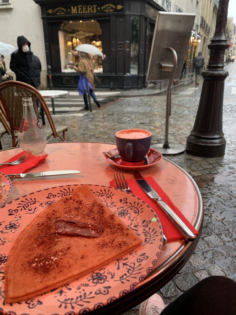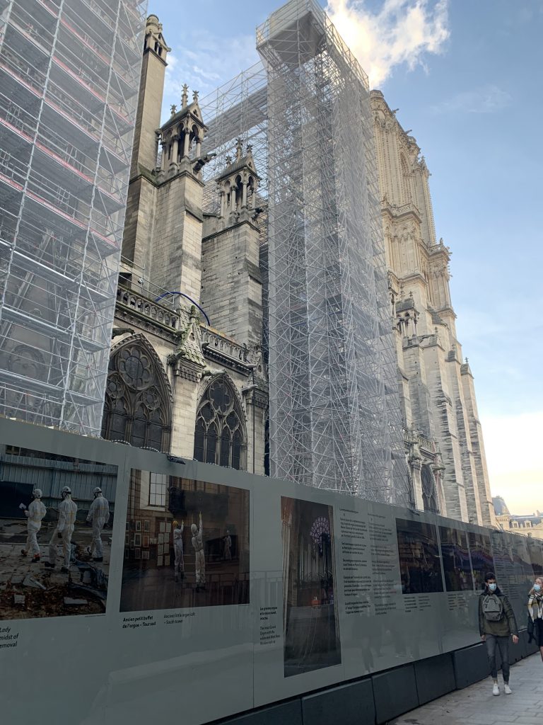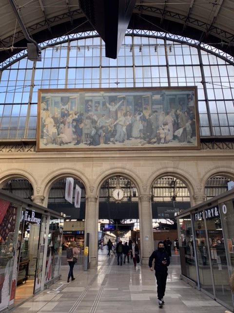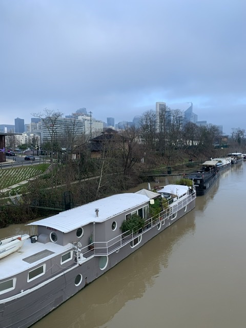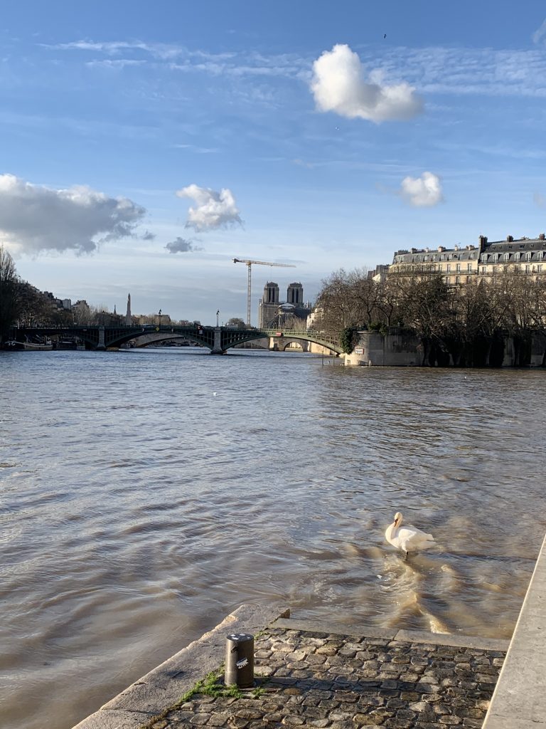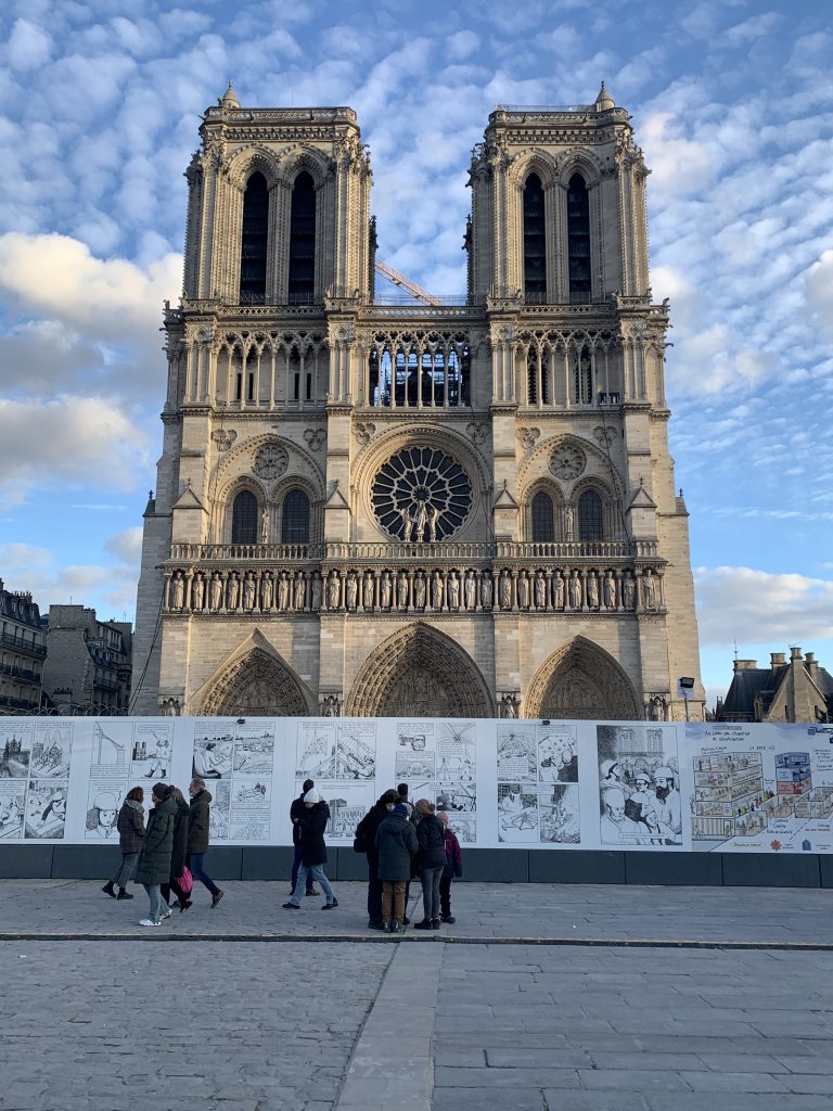 Nach ein typisch französisch eher mageren Frühstück mit etwas Baguette und Kaffee verlasse ich mein schönes Zuhause mit dem Ziel Marais, das jüdische Viertel. Es sind ca. 6 – 7 km. Ich komme am Gare de Nord und Gare de L´Est vorbei. Die Straßen bieten mir viel Abwechslung, es ist anders als in Deutschland, zum Glück! Viele Schlangen vor den Apotheken für die Corona-Tests sehe ich. Über den Place de la Republique mit seiner großen Bronzestatue (sie symbolisiert die Republik durch die berühmte Marianne) tauche ich direkt via Rue Beranger, wo es eine uralte etwas vergessene Glaseinkaufsgalerie (Passage Vendome) gibt, über die Rue de Charlot in Marais ein. An der Kreuzung zur Rue de Bretangne entdecke ich einen kleinen Open-Air-Food-Court. Italienische, französische, israelische und arabische Küchen erwarten mich. Es ist halb eins, ein paar Gäste sind schon da. Ich entscheide mich für Couscous und einen thé de menthe, der in einer Silberkanne serviert wird. Das heiße Getränk und die Pause tun gut. Marais ist für seine schönen Bürgerhäuser und Adelspaläste bekannt, diese nennen sich alle Hotels obwohl es gar keine Hotels mehr sind. Per Zufall führt mich mein Weg am Hotel Guenegard vorbei, echt beeindruckend mit den schönen Säulengängen. Hier ist gerade eine Ausstellung über Merinoschafe. Weiter gehts über die Rue de Rosier (ehemaliges jüdisches Ghetto) zu einem jüdischen Feinkostladen Finkelsztaijn, wo ich ein Blini gefüllt mit Auberginen für teure 4,20 EUR erwerbe. Egal es schmeckt trotzdem. Im benachbarten Fachwerkrestaurant Marianne kann man auch jüdisches Essen genießen. Das schöne Wetter zieht mich durch einen Hinterhofpark (Jardin de Rosier) und einen großen majestätischen Park (Square Louis XIII) weiter Richtung Bastille zum Canal Saint Martin, wo die Boote der Stadt geparkt werden. Die Pariser nutzen die Wintersonne und chillen am Ufer. Ich gehe weiter nach Süden unter verschiedenen Brücken durch zur Seine. Über das Quai d´Orleans, wo ich mir in der Sonne ein Bier, das mit Popcorn begleitet wird, bestelle, erreiche ich über die Pont Saint Louis schließlich Notre Dame. Sie ist umzäunt und eine Ausstellung an den Zäunen dokumentiert die Renovierung. Viele interessante Aspekte werden gezeigt, z.B. das die Orgel gerettet werden konnte und jetzt gereinigt wird. Viele alte Statuen wurden von Feuer unstabil und für die Restauration abgebaut. Das wird Jahre dauern, viele Zimmerleute, Bauingenieure und Wissenschaftler sind an der Arbeit. Vor dem Dom ist eine Art riesiger Comic an der Baustellenbegrenzung angebracht, der die unterschiedlichen Arbeiten super dokumentiert. Leider nur auf französisch. Ich gehe weiter an der Seine und sehe die typischen Buchläden in ihren alten Bretterverschlägen. Die Seine ist sehr schlammig und viele alte Schiffe stehen am Ufer. Dann führt mich die berühmte Holzfussgängerbrücke Pont des Arts zum Louvre. Da ich als Kind schonmal hier war und die Mona Lisa gesehen habe, lasse ich das mal weg. Die hübsche Glaspyramide kann ich auch von oben sehen. Durch die winterlichen Tuilerien erreiche ich das 1. Arrondissement mit seiner Oper und dem Kaufhaus La Fayette. Ich bummele durch ein paar kleine Geschäfte, es ist interessant zu schauen, was angeboten wird. Die Auswahl ist durchaus verlockend, doch ich bin nach 20 km und den vielen Eindrücken inzwischen etwas müde und möchte nach Hause. In einem Franprix Supermarkt hole ich mir eine Flasche Weißwein, Käse, Joghurt, Gemüse, Öl und Essig. Alleine essen gehen und bei den hohen Zahlen werde ich mir heute verkneifen und das Appartment ist wirklich super schön und entspannend.