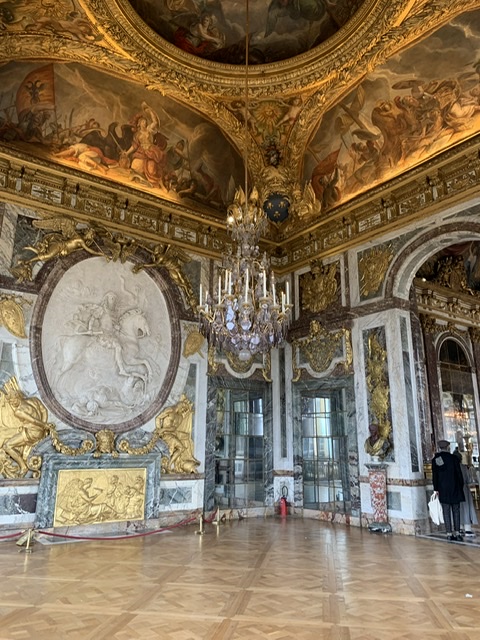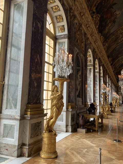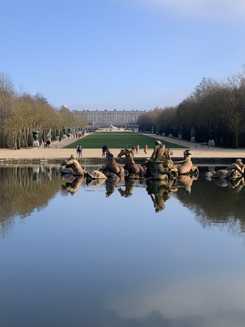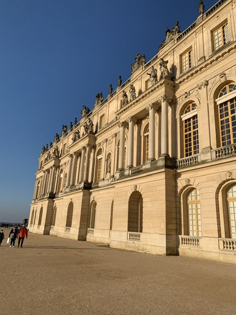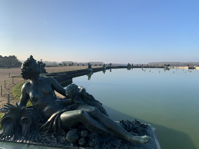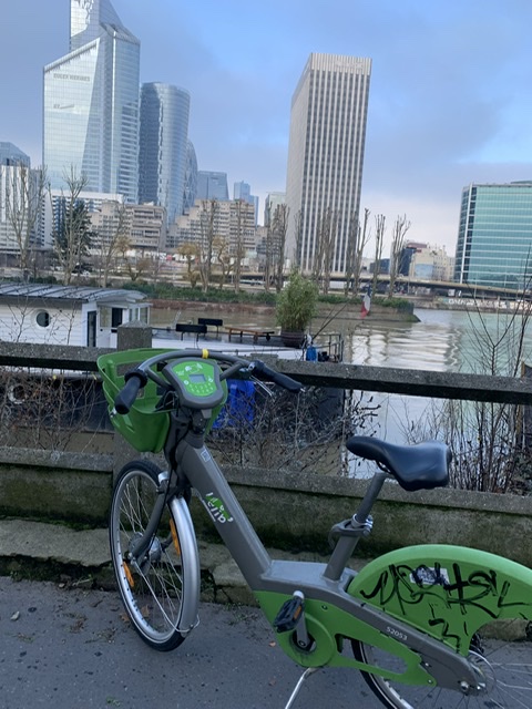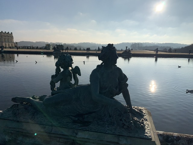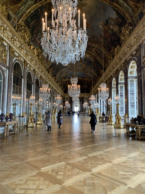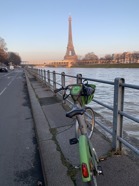 Mein letzter Tag bricht an, das Wetter soll heute schön werden. Mit einem Baguette traditionelle vom Bäcker nebenan, verschiedenen Käsesorten, Tomaten und Kaffee starte ich. Es war nicht so leicht, zu planen, woher und wie ich mir das Rad besorge. Hier fahren zwar verschiedene Leihräder herum, aber die Marke, die mir am besten gefallen hat, gibt es nur mit einem Monatsabo, also für die locals interessant. Bleibt eigentlich nur Velib übrig. Sie haben eine App und man kann sich Räder on demand, d.h. Auch Stundenweise ausleihen. Voraussetzung ist ein Pass Navigo Decouverte, den man braucht, um Wochentickets für den Pariser Transport drauf zu laden. Dafür benötigt man ein Passbild und muss den Pass bei einer Metrostation erwerben. Kostet 5 EUR. Den Pass muss man bei Velib aktivieren und kann losradeln. Klingt kompliziert, mal schauen, ob das klappt. Den Pass bekomme ich ohne Probleme, aber beim ersten Rad nimmt er meine Codes nicht an. Ich sehe mir das Einleitungsvideo auf Youtube nochmal an, während meine Finger werden immer klammer werden. Als es endlich klappt, gibt der Fahrradhalter das Rad nicht frei. Na super. Ein Typ, der auch eins ausleiht, erklärt mir, dass das bei einigen Rädern vorkommt. Ich suche ein neues. Nach etlichen Versuchen klappt es endlich und ich kann losradeln. Komoot hat für mich schon geplant: ca. 22 km nach Versailles an der Seine entlang, sollte ja kein Problem werden. Naja, das bewahrheitet sich leider nicht. Das Rad ist viel zu klein für mich, der Sattel ist eher für Asiaten geeignet, was das Treten echt mühsam macht. Der Gang springt und die Bremsen sind etwas schwer zu betätigen, dennoch komme ich gut voran und genieße die Fahrt in die äußeren Bezirke von Paris. An der Seine stehen unglaublich viele Luxushausboote, mit eigenem Anleger, Garten und sogar mit eigenen Abstellplätzen für Fahrräder und Mülltonnen. Riesige Schiffe, so groß wie Eigentumswohnungen in erster Lage direkt am Wasser. Ich erreiche La Defense, die Bürostadt. Die Hochhäuser sind ganz hübsch, fallen aber erst dort draußen auf. In Saint-Cloud verlasse ich die Straße und biege in einen schloßähnlichen Park ab. Der Weg geht ziemlich steil auf Kopfsteinpflaster bergauf und ich kämpfe mit diesem schweren Rad, muss sogar schieben. Na super, wie soll ich damit nach Versailles kommen? Endlich geht es wieder bergab und ich erreiche Ville-d‘Avray ein hübsches Dorf mit kleinen Steinhäusern, welche mich eher an England erinnern. Der Weg führt weiter bergauf, mein Tempo verlangsamt sich erheblich bis ich ich endlich den Ortseingang von Versailles erreiche. Die große Promenade führt mich direkt zum Schloß. Dort ist leider kein Parkplatz von Velib, daher stelle ich mein Rad direkt vor dem Tor ab, was niemanden stört. Mit dem Online Ticket bin ich sofort drin und komme direkt in die Wohn-Gemächer im 1. Stock. Der Spiegelsaal ist super, sehr hell und lang. Und lustig, zu sehen, wo Louis der 14. und seine Gefährtin geschlafen haben. Aber wo sind bloß die 20.000 Höflinge untergebracht gewesen? Das Schloß ist zwar groß, aber wurde ja auch für Verwaltung genutzt. Viele junge Leute besuchen Versailles, aber es ist nicht zu voll, so dass man stressfrei überall durchkommt. Draußen im Park kommt endlich die versprochene Sonne raus, ich genieße die Aussichten auf die vielen Wasserflächen und den Spaziergang in den gepflegten, unendlich wirkenden Park. Die Blickachsen sind der Wahnsinn. Wieviele Gärtner hierfür gebraucht werden? Im Sommer muss es noch schöner sein. Nach vielen Fotos kann ich mich endlich losreißen und hoffe, dass mein Rad noch da ist. Gezwungenermaßen mache ich mich auf die 20km Rückreise in der Antizipation, dass diesmal bergab geht. Mein Wunsch wird erfüllt, es gibt tolle Radwege und die Autos achten wirklich sehr auf ausreichenden Abstand und sicheres Überholen. Kein Autofahrer ist genervt oder drängelt. Schnell erreiche ich wieder die Seine und fahre weiter in südlicher Richtung. Auch hier moderne Bürohochhäuser und wieder zahlreiche Hausboote. Schließlich taucht der Eifelturm vor mit auf, erst noch in großer Ferne. Vor ihm steigt ein Heißluftballon auf (auch eine touristische Attraktion). Das Seine-Ufer strahlt in der Abendsonne auf, faszinierende Ausblicke.