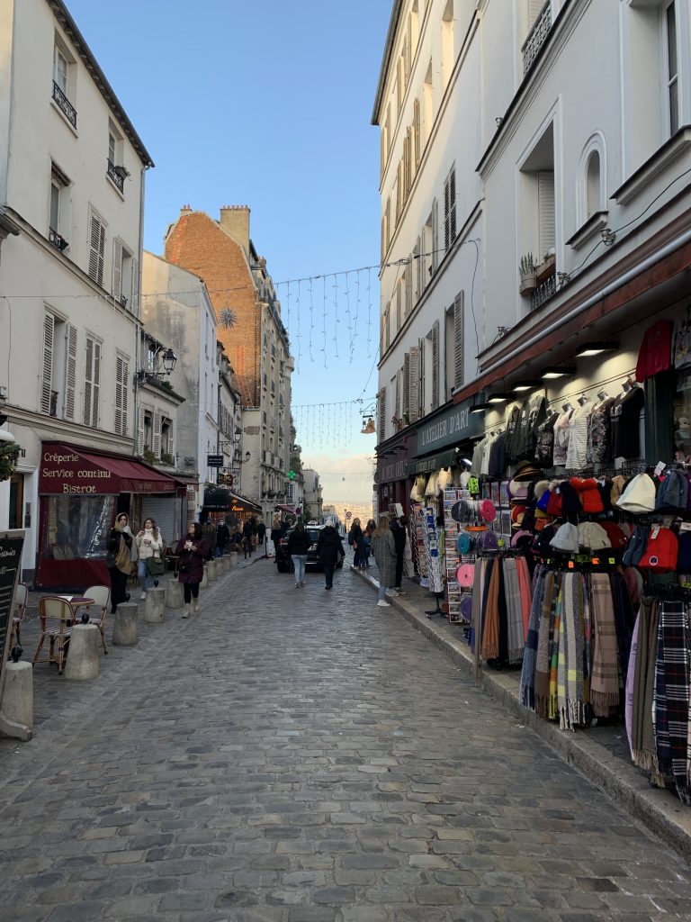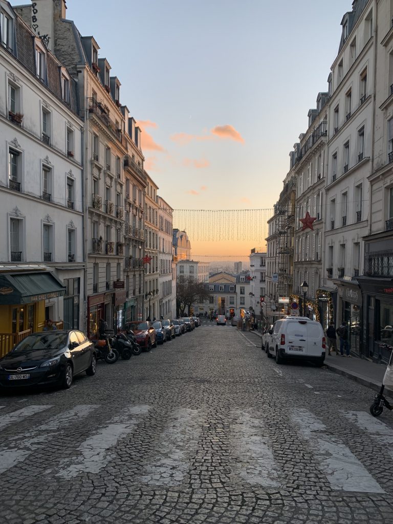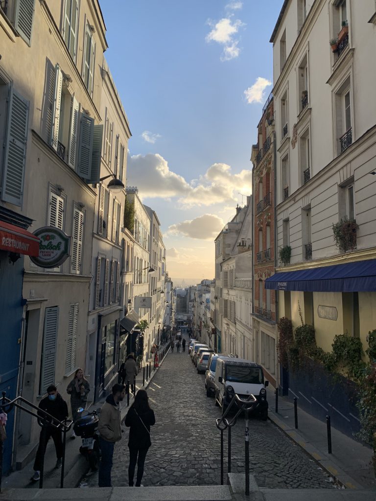Die Anreise mit dem Zug war problemlos, es dauert nur 4 Stunden von Ffm, dann empfängt mich der Gare de l´Est in Paris. Höchsttempo war übrigens 319 km/h (mit Ökostrom). Mein AirBnB Appartment liegt im Norden der Stadt, aber auch nur 15 Metrominuten entfernt. Ein komisches Gefühl mit den für Paris typischen Einlass Codes ausgestattet in ein fremdes Haus zu gehen. Der Aufzug ist alt, eng und schnell. Das Haus hat definitiv Charme, uralt. Die Wohnung ebenso, ca. 35 qm, 2 helle, sehr süß eingerichtete Zimmer aber ein modernes Bad. Alles was man braucht. Ich starte mit einem Espresso aus den mitgebrachten Kapseln und richte mich ein. Doch bei dem schönen Wetter wäre jede Stunde drinnen Verschwendung. Ich gehe auf die Straße mit dem Ziel Sacre Coeur/Montmartre. Allein die kleinen Boulangeries, Patisseries, Obstläden und Boucheries sind eine Reise wert. Was für eine liebevoll zusammengestellte Auswahl an Kleinigkeiten, die es bei uns nicht gibt. Hier werde ich nicht hungern. Foto folgt. Am Montmartre erschlägt mich der Blick. Die Wolken ziehen über die Stadt und von dort oben kann man wunderschön die Straßen hinab auf Paris schauen. Trotz Corona sieht man viele Touristen, wie ist das dort denn im Sommer ohne Pandemie? Das stelle ich mir lieber nicht vor. Den letzten Sonnenstrahlen folgend ziehe ich weiter Richtung Südwesten und lande direkt am Pigalle mit der Moulin Rouge. Zurück nach Norden über die belebte und gemütliche Einkaufsstraße Rue Damremont erreiche ich mit einem frischen Baguette wieder mein neues Zuhause.