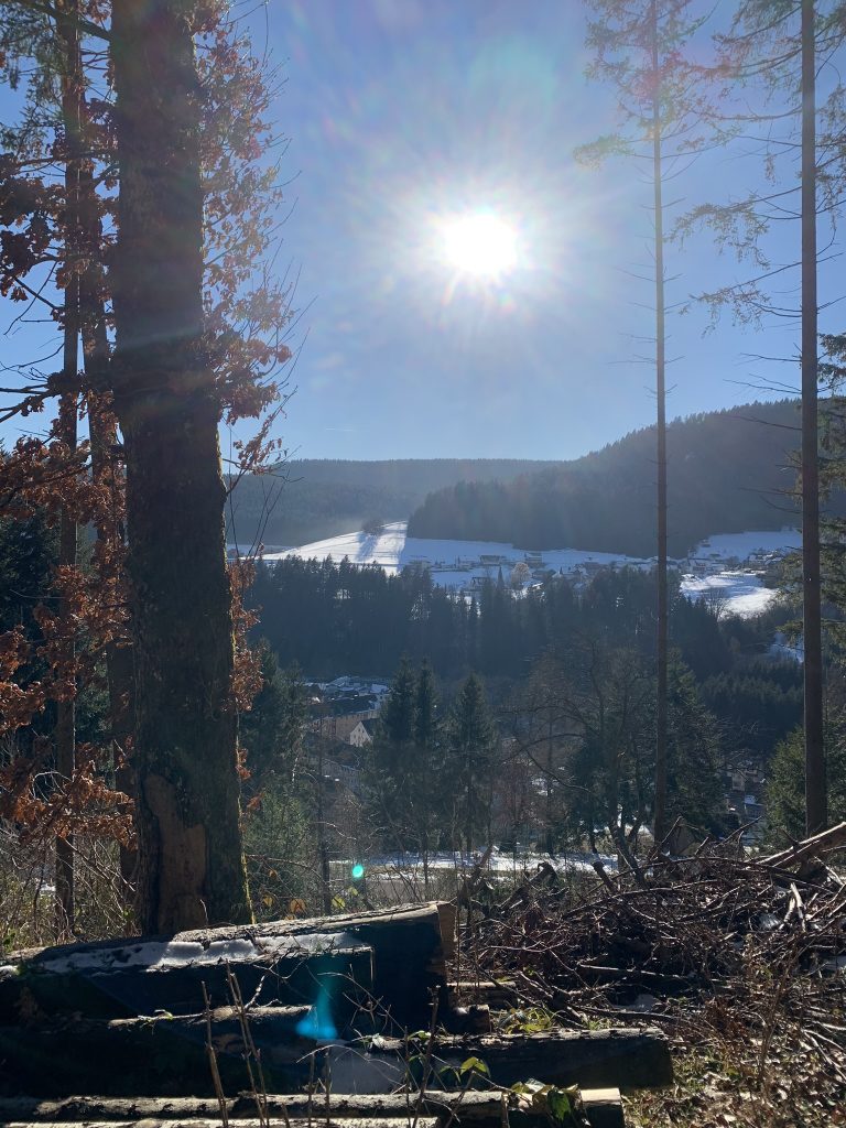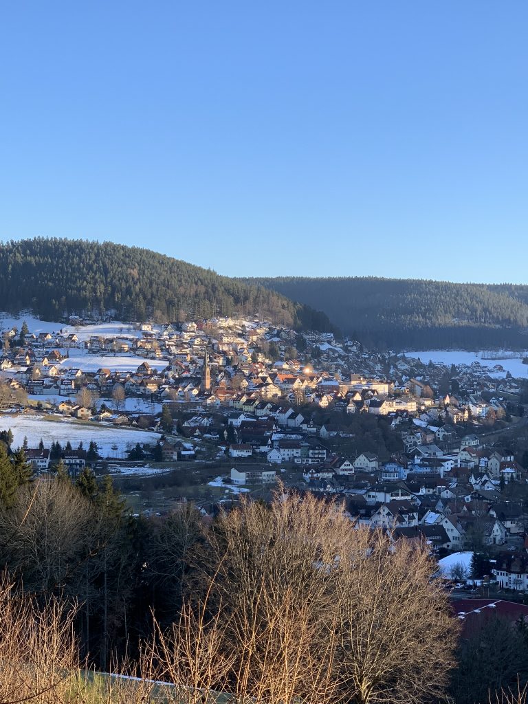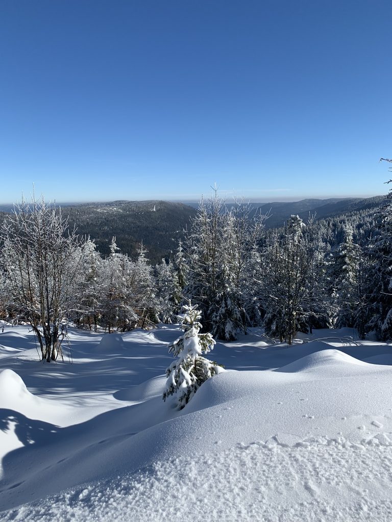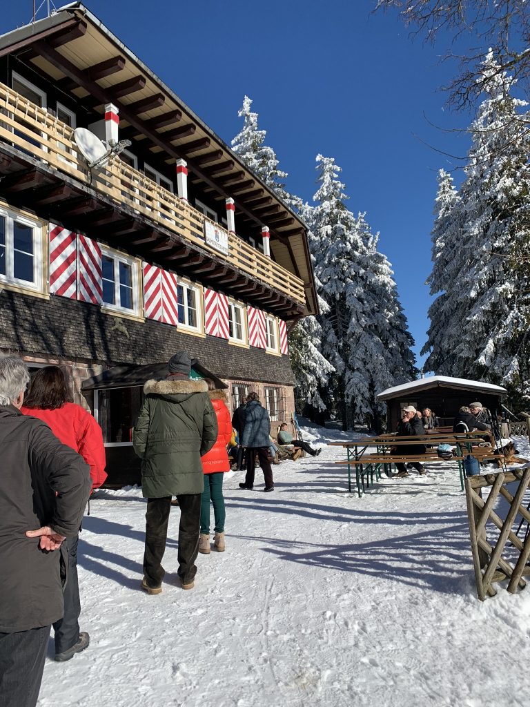 Heute Morgen starte ich um 9:30 am Hochmoor Kaltenbronn auf etwa 935 m Höhe. Der Parkplatz ist noch recht leer. Die Loipe führt ca. 8 km eher bergab und etwas vereist zur Grünhütte, welche auf einer Lichtung in der Sonne liegt. Nach einer Capucchino-Pause geht es wieder zurück durch das Hochmoor mit einem schönen Blick auf die Wälder. Die Loipen sind zwar etwas belebter jetzt aber durchaus noch angenehm. Mit dem Auto fahre ich zurück über die Höhenstraßen durch Reichental und dann durch das hübsche Murgtal bergauf an überdachten Holzbrücken vorbei Richtung Baiersbronn. Dort mache ich noch einen Spaziergang auf den Rinkenkopf, der meinen müden Langlaufbeinen ziemlich gut tut. Die Belastung ist für ungeübte Läufer doch etwas einseitig, aber ich finde die Dehnung des Hüftbeugers beim Gleiten ziemlich angenehm. In der Sattlerhütte finde ich noch einen Platz und bestelle einen Salat mit Forellenfilets und ofenfrischem Roggenbrot. Mit meinen Tischnachbarn komme ich ins Gespräch und erhalte wertvolle Tipps für meine geplante Namibia-Reise.