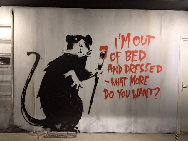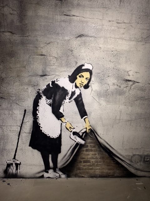 Gestern habe ich Daniela am Bahnhof abgeholt, sie besucht mich übers Wochenende. Inzwischen fühle ich mich schon etwas heimisch in Paris und es war lustig, sie am Gare de l´Est abzuholen und ihr „meine Wohnung“ zu zeigen. Wir nutzten die Sonne für einen Spaziergang durch Montmartre und haben die Banksy Ausstellung besucht. Beeindruckend, was er macht. Ich kenne ich noch gar nicht so lange, aber ich finde seine Kunst mega. Er weist auf so vieles hin und das auf eine freche Art, die jedem unter die Haut gehen muss. In Bristol, England verkaufen sie gerade T-Shirts von der Aktion, wo vier Typen eine Statue von einem Sockel gerissen haben. Es war ein Denkmal von Colson, der eigentlich ein Skavenhändler war. Banksy hat ein T-Shirt vom Sockel kreiert und das wird zum Support der Jungs, die evtl. ins Gefängnis müssen, verkauft. More? SEE: BANKSY auf Instagram. Mega coole Videos auch von seinen Spray-Aktionen.