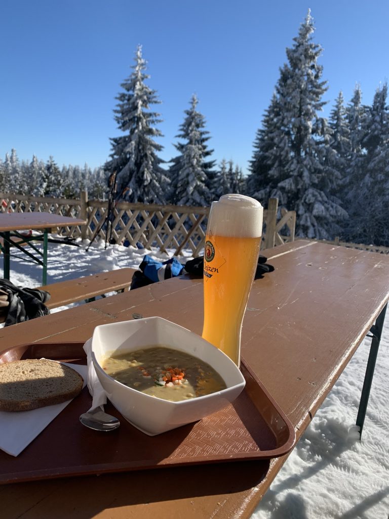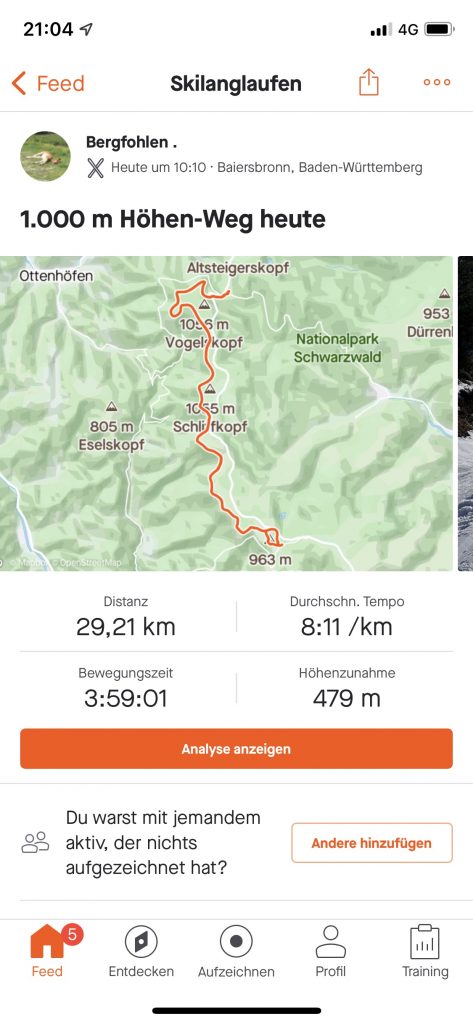 Fast 500 Höhenmeter und 30km stellen für mich vermutlich einen Langlauf-Streckenrekord dar. Zum Glück habe ich noch heißen Tee und ein paar Snacks im Auto. Happy und müde trete ich den Heimweg nach Frankfurt an. Natürlich gibt es noch einen Zwischenstopp am Seibelseckle, wo ich einen heißen Kakao und ein Stückchen Käsekirschstreuselkuchen verzehre. Auf der kurvigen Schwarzwaldhochstraße herrscht sehr dichter Nebel, so dass die Rückfahrt zu einem kleinen Abenteuer wird. Via Bühlertal erreiche ich die A5 und bin 2 Stunden wieder zuhause.