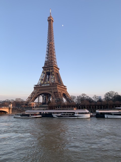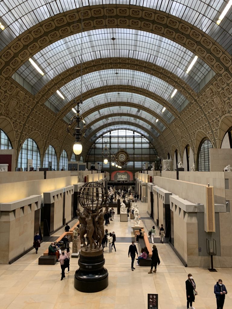 Heute waren wir im Musée D´Orsay. Hier haben mir vollem die Statuen von Rodin gefallen und die Impressionisten natürlich. „Nympheas bleu“ (Seerosen) von Claude Monet sind mein Lieblingsbild. Von Renoir gefällt mir „Bal du moulin de La Galette“. Von Paul Gauguin „Le Chevale blanc“. Es ist echt riesig. Das Musée ist in einem ehemaligen historischem ziemlich großen Bahnhof und liegt südlich der Seine. Von dort hat man einen schönen Blick über die Stadt zum Montmartre. Leider war das Wetter danach ziemlich ekelhaft und es war sehr regnerisch bei unserem weiteren Spaziergang an der Seine in Richtung Notre Dame und dann vom Institute des Mondes Arabe nach Marais zu einer kostenlosen Luminations-Ausstellung „Topographien de la lumiére“ in einer alten Fabrikhalle. Diesen Typ haben wir von Erik, einem Freund von Daniela erhalten, der die Künstlerin eines Werkes kennt (Vera Röhm) und ihr bei der Umsetzung geholfen hat. Zwischendurch haben wir uns mit einem Café au lait und einem Crêpe unter der Markisenheizung eines Cafés gestärkt und aufgewärmt. Marais gefällt mir immer besser, es ist sehr entspannt und man kann dort sehr schön bummeln.