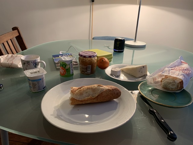 Abends war es dann ganz schön, mal gemeinsam zu essen. Wir haben in der Nachbarschaft ein Bistro aufgestöbert und ich hatte Voc au crevettes und Dani Agneau avec Pommes frites. Et un vin rouge:-)