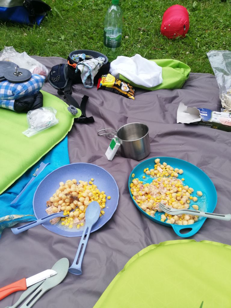Lustigerweise kommen wir dann auf den Jakobsweg und finden ein Ständchen für Pilger, wo diese für eine kleine Spende Essen bekommen. Wir fühlen uns auch als Pilger, schließlich haben wir alle das gleiche Ziel, dem Alltag entfliehen und ein wenig zur Ruhe kommen.