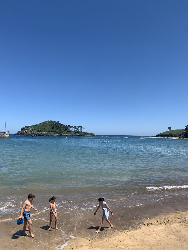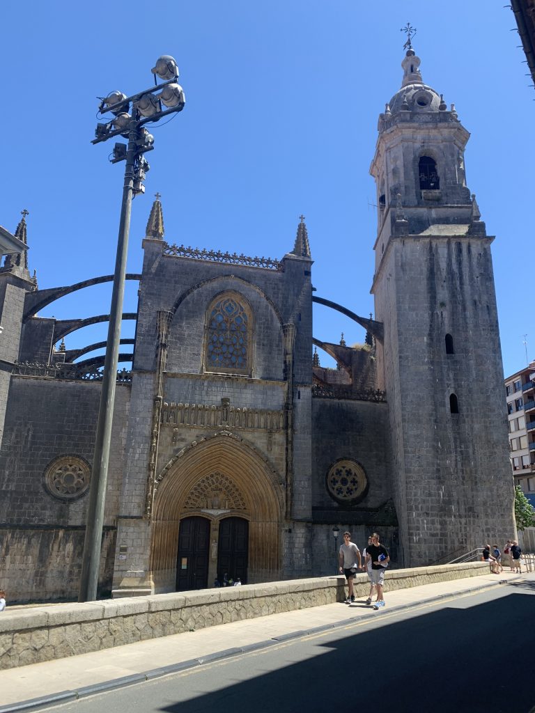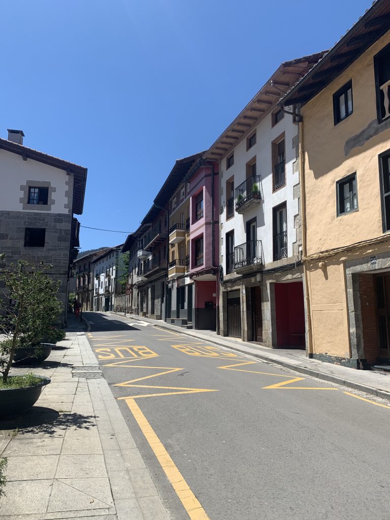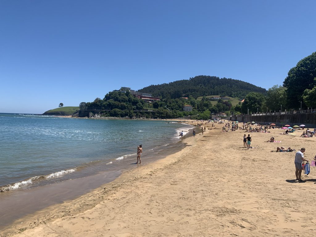 Nach einem ausgiebigen Stadtbummel durch die Altstadt mit Tapas auf der Plaza Nueva und einem kurzem Besuch beim Guggenheim Museum (war leider schon zu, geniale Lage am Flussufer mit glitzernder Fassade, die an ein Schiff erinnert) genießen wir die letzte Nacht in einem Bett. Ab Morgen zelten wir. Das Frühstück ist lecker, wir sprechen mit einem holländischen Pärchen, das den Camino von Irun bis Bilbao gelaufen ist. Schnell sind die Räder aufgesattelt und wir verlassen die Altstadt, kommen via Gewerbegebiet in die Vororte. Dann wird es idyllisch und wir kommen in die waldigen grünen Hügel östlich von Bilbao. Der Spaß endet, als unser Routenplaner Komoot uns einen schmalen Trail in die Wildnis hochschickt. Fahren unmöglich, so verwildert ist es hier. Wir schieben die Drahtesel mühsam und schimpfend den felsigen Pfad nach oben. Das kostet Kraft, ausgerechnet an einem Tag, der mit 1.300 Höhenmetern eh schon sehr herausfordernd geplant ist. Nach 2 km Schieben ist wieder Fahren möglich, doch Schlammlöcher stoppen uns und mein Schuh wird nass. Endlich gelangen wir wieder auf einen Karrenweg und verlassen erleichtert den Bergwald. Ich beschließe umzuplanen auf Rennrad-Wege, das ist mir sicherer. Endlich sind wir oben auf einer einsamen Asphaltstraße mit herrlicher Aussicht auf die umliegenden Wälder und Berge. Viele Rennradfahrer sind am Sonntag hier unterwegs, alle grüßen. Wir passieren Munitibar, Aulesti und gelangen in Lekeitio ans Meer. Nach einer Eispause gehts auf der schattigen Küstenstrasse nach Ondorroa, wo wir am sandigen Strand ins Meer abkühlen und in der Sonne erholen. Zum Campingplatz Gabona sind es nur noch 3 km, am Wegesrand wachsen Walderdbeeren. Heute 78 km und 1.225 Hm.