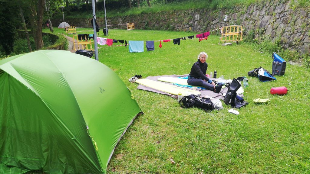 Der heutige Campingplatz Igeldo liegt kurz vor San Sebastian, wir haben eine riesige Sonnenterrasse ganz für uns alleine, probieren unsere Outdoordusche aus und hören 80er Hits beim Sonnenbaden auf der Wiese… So kann es weiter gehen!