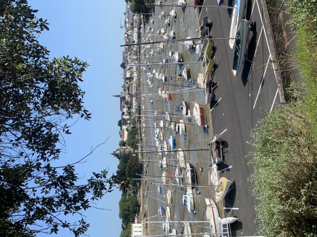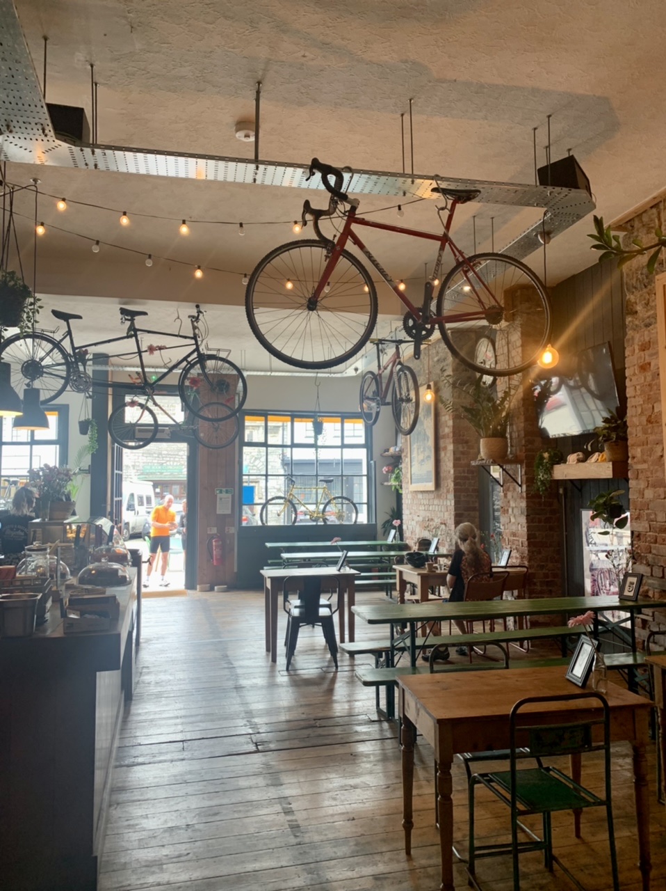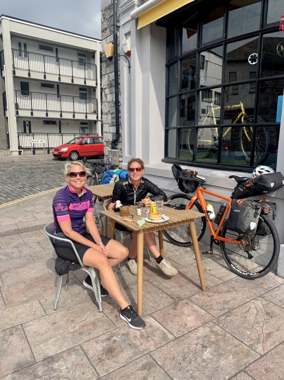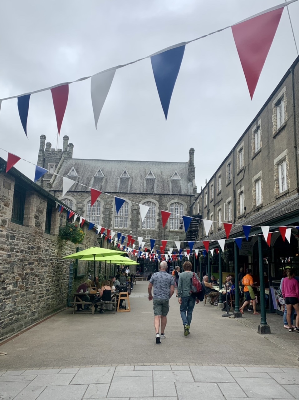 Wir wachen im gemütlichen AirBnB auf (eigenes Bad) und machen uns Tee mit Instant Porrigde in der Gästeküche. Dann radeln wir am Hafen entlang zum Radcafe um Lianes Schaltung reparieren zu lassen. Das Café hat leckere Bagels und ist super süß eingerichtet. Lauter Bikes hängen an den alten Wänden. Bikerepair ist nur donnerstags aber sie kennen eine Werkstatt und avisieren uns. Draußen werden wir und unsere Räder von zwei Rennradlern beäugt. Wir kommen sofort ins Gespräch und erzählen was wir tun. Sie sind bereits fertig mit ihrer Ausfahrt, relaxen im Café und bieten uns Shuttle zur Werkstatt. Morgen nehmen sie an einem 100-Miles-Rennen durch Dartmoor teil. Die Werkstatt ersetzt den Schaltzug sofort. Klasse! Weiter gehts durch Plymouth zurück auf den Track. Regen ist avisiert, wir fahren einfach so weit wir kommen. Der “Dragons-Track” ist auf alten Schienen, diesmal asphaltiert und geht durch grüne Wälder über alte Brücken und durch dunkle feuchte Tunnel. Viele Wanderer und Biker sind unterwegs. So schön. Hinter dem Dorf Tavistock beginnt Dartmoor, Ponys und Schafe weiden auf den endlosen Moorwiesen. Der Wind bauscht auf, es wird ungemütlich. Aber egal, es ist so schön das alles zu erleben und zu sehen. In Yelverton kaufen wir Food. Tavistock ist eine alte kleine Stadt mit schönen Marktplätzen, wo man auf einem Flohmarkt herrlich bummeln kann. Alle Menschen sind so freundlich. Hügelig gehts durch Peters Tavy und Mary Tavi. Nix los hier, nur hübsche uralte Steinhäuser und kleine Farmen. Der Wind wird noch stärker, wir können kaum noch fahren. Kurz vorm Ziel Lydford, erwischt uns der Regen. Unter dichten Bäumen ziehen wir schnell das Regenzeug an, machen kurzen Stopp und meistern den letzten km zum Campingplatz. Auch hiervon lustig-herzlicher Eigentümer, für 10 GBP dürfen wir auf die Wiese. Im Sturm bauen wir das Zelt auf, aus lauter Hektik finden wir die ausnahmsweise mal dringend benötigten Heringe nicht. Der Zeltplatz hat Ersatz. Auf den Schreck gehen wir ins Pub, es ist voll, wir bekommen keinen Tisch dort aber werden vom anderen Campern an ihren Tisch eingeladen. Es gibt Lager, Cider, Lamm und Burger. Schöner Abend mit netter Konversation mit 2 englischen Paaren. Könnte nicht besser sein. Der Regen wartet bis wir im Zelt sind. So polite 😀