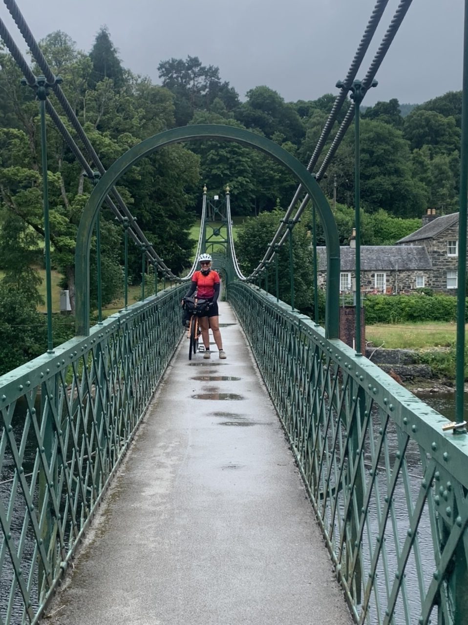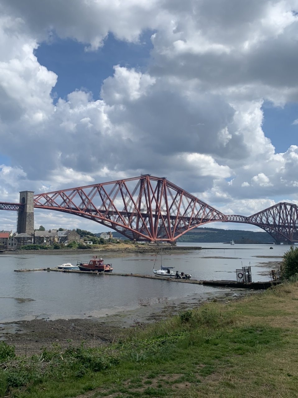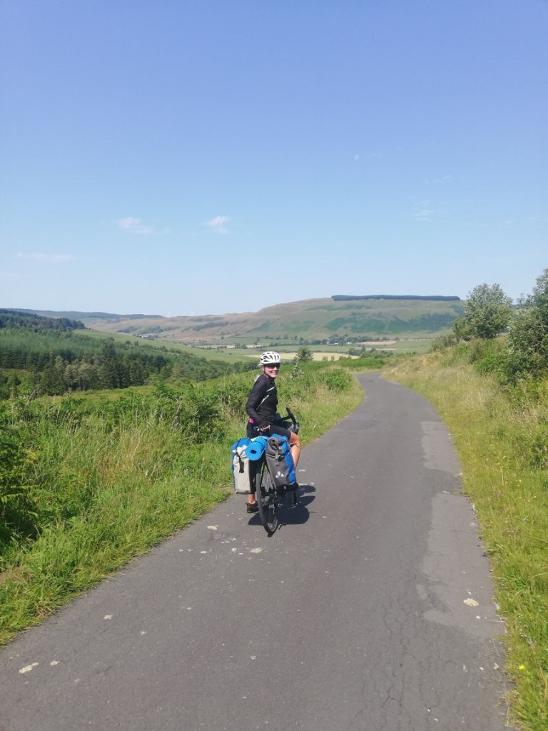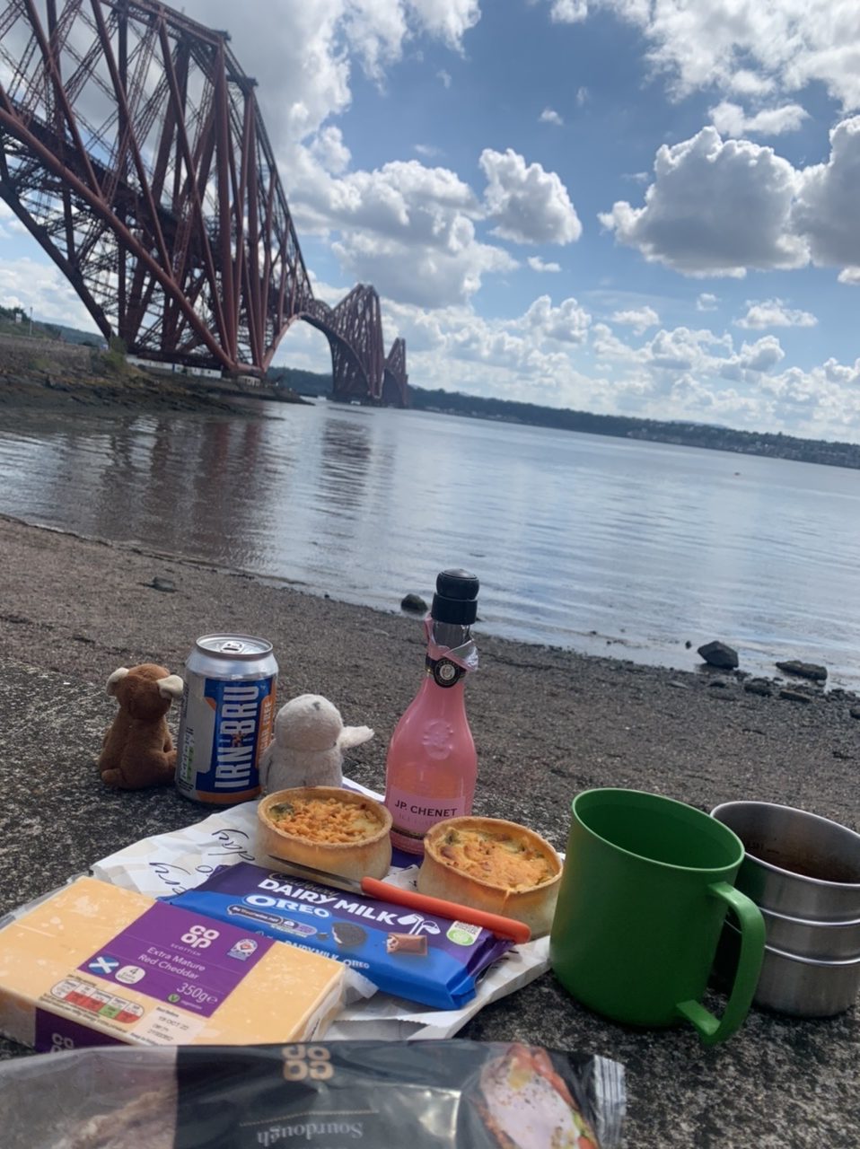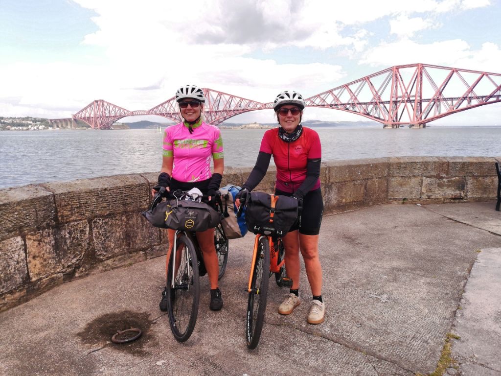 Ein super leckeres Frühstücksbuffet stärkt uns für die nun doch noch kommende letzte Etappe. Plus 75km und 900hm,weil wir nicht in den Bus gepasst haben 😂… Aber das Wetter ist heute mit uns, und wir freuen uns, mit dem Rad in Edinburgh einzurollen anstatt dem Bus. Es geht gemütlich aus der Stadt Perth hinaus über einsame Wiesen, Felder und Hügel, nach 50km erreichen wir Inverkeithing, die Stadt an der die drei Brücken über den Firth of Forth führen. Die Eisenbahnbrücke ist die älteste und beeindruckendste der Brücken. Sie ist eine 130 Jahre alte Stahlbrücke mit vier anmutigen Auslegern, auf welche die Querträger aufgelegt sind als Gerberträger. Sie hatte 30 Jahre mit 521m Länge die größte Spannweite aller Brücken weltweit, bis 1920 die Québec-Brücke gebaut wurde. Daneben verlaufen die alte Straßenbrücke aus den 60ern als Hangeseilbrücke und die neuere Autobahnbrücke. Wir nutzen die mittlere, Mary sieht mal wieder nicht, dass der linke Radweg gesperrt ist und die Radler die rechte Seite nehmen sollen, und beschließt die Hauptspur zu nehmen. Da fast kein Verkehr ist, sag ich mal nichts und radel einfach hinterher. Ein Bus hinter uns hupt ungeduldig und wir weichen auf die abgesperrte zweite Spur aus. In der Mitte der Brücke kommt ein blinkendes Wartungsfahrzeug auf uns zu. Die Männer rufen aufgeregt, wir sollen doch den Radweg nehmen, nur in der Mitte der Brücke ist kein Spurwechsel möglich! Mary fährt einfach weiter, und umkehren möchte ich auch nicht mehr. Also rufe ich kurz zu den Männern rüber „Sorry, I can’t hear you!“ und hechte hinter meiner Schwester hinterher🙈… Am Südufer halten wir kurz an um einen älteren Herren zu bitten unser Finisher-Foto zu schießen und er erzählt uns die Geschichte der Brücken und dass es in der Nähe Seerobben, Delfine und Wale zu beobachten gibt. Jetzt geht es noch 15km auf feinstem Gravelbelag entlang des Meeres in die Stadt hinein. Es sieht noch sehr ländlich aus, und wir können gar nicht glauben, dass Edinburgh solch eine große Stadt ist. Der Campingplatz liegt nicht weit vom Meer, und ist ausgebucht. Wir probieren es trotzdem und lassen alle unsere Überredungskünste spielen. Letztendlich lässt uns der freundliche Mann auf der Camperwiese auf der Anhöhe zelten, weit genug entfernt von allen anderen. Welch ein Glück, der andere Campingplatz wäre nochmal 16km weiter gewesen und den Stadthügel hoch. Wie bergig Edinburgh ist, sehen wir bei der Einfahrt in die Altstadt mit dem Doppeldecker. Wir haben noch einen schönen Abend im Pub und einer Event location, die uns ans Oktoberfest erinnert. Aber egal, Frau kommt nur einmal im Leben nach 4.400 km und 35.000 Hm in Edinburgh an!