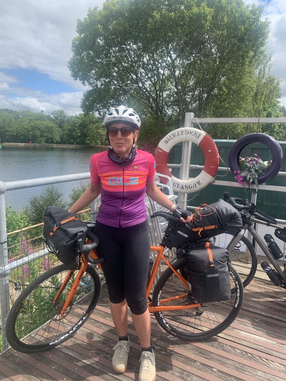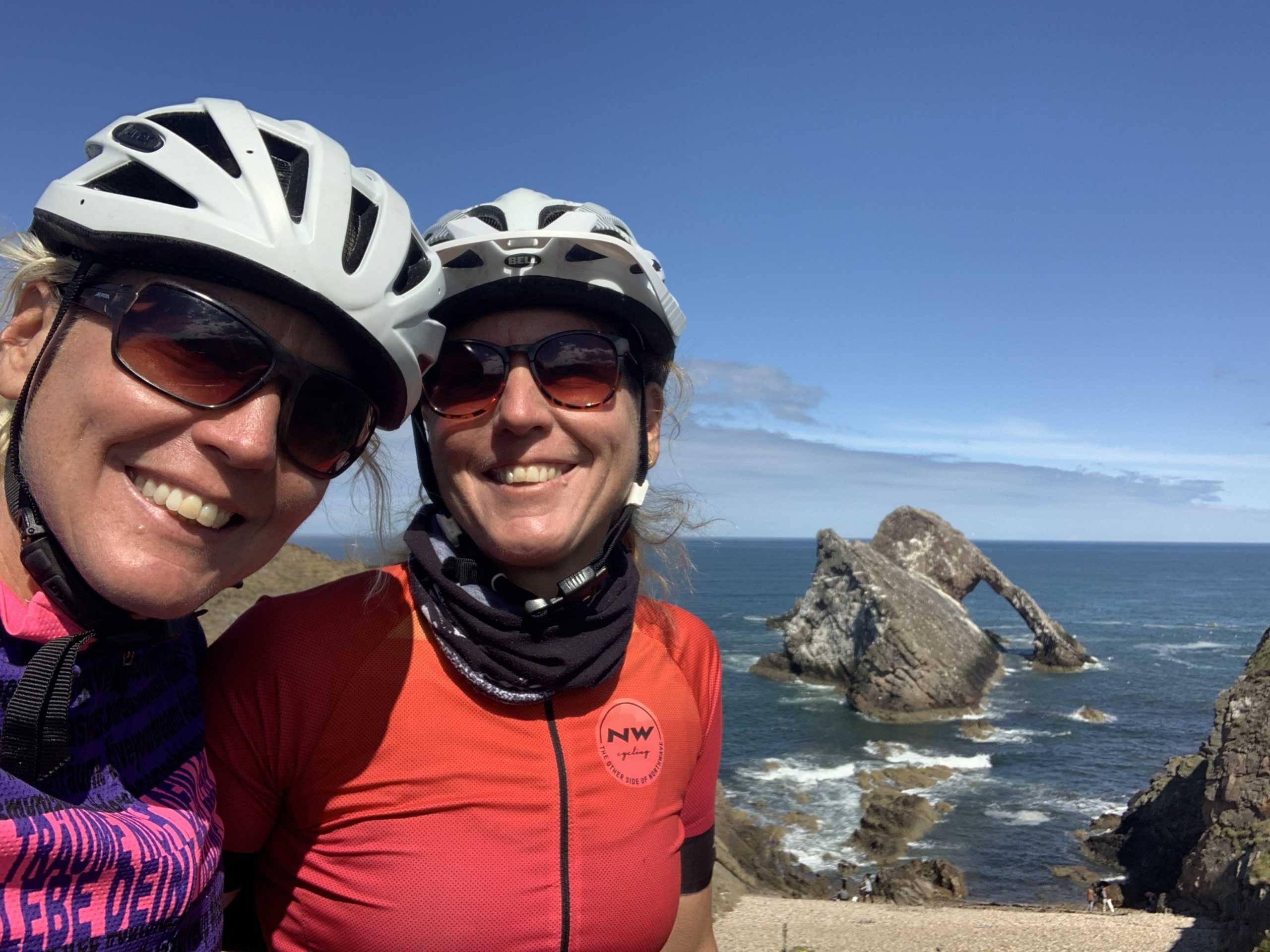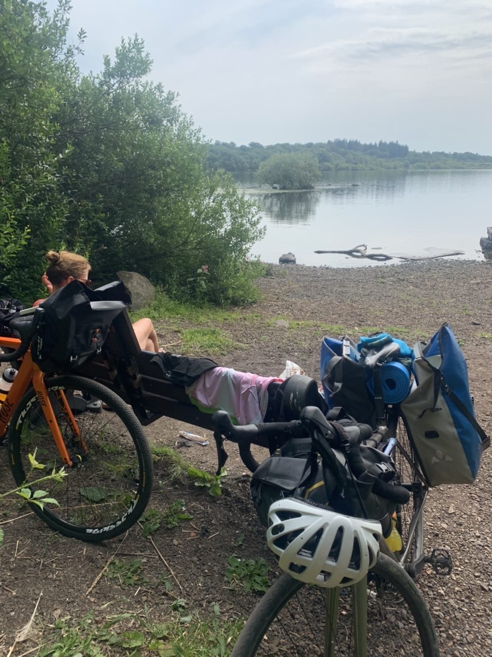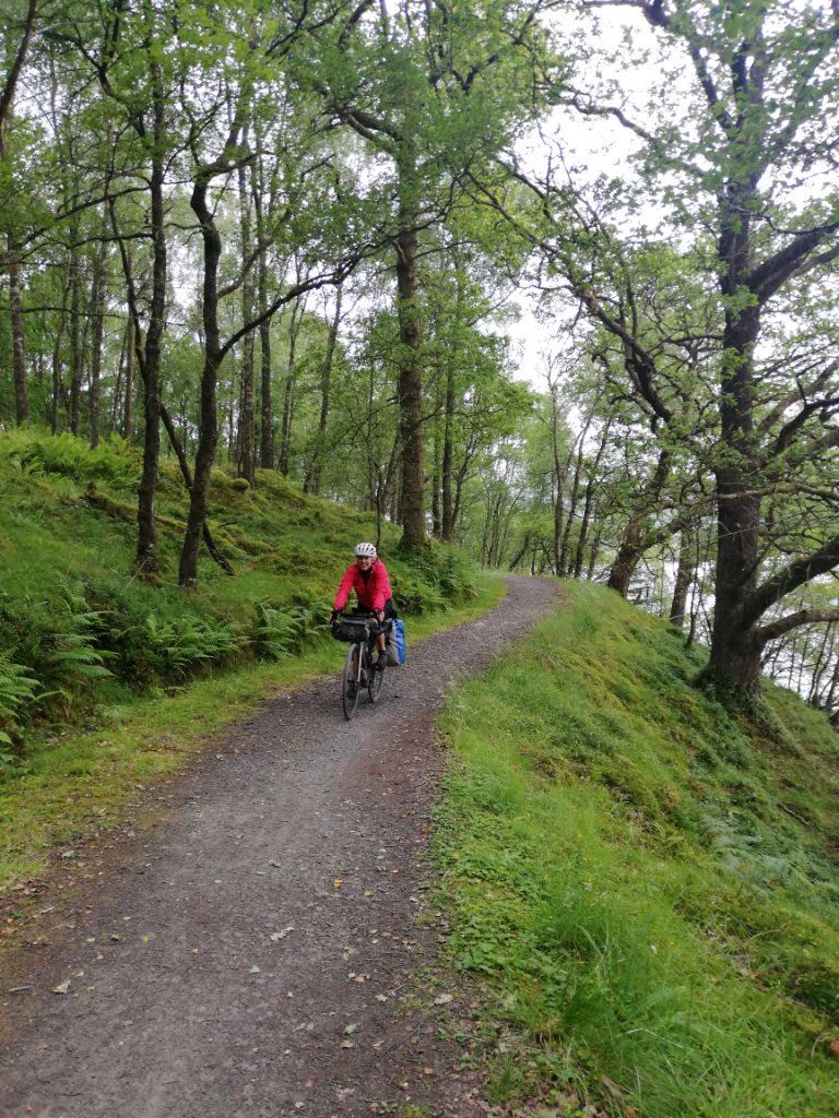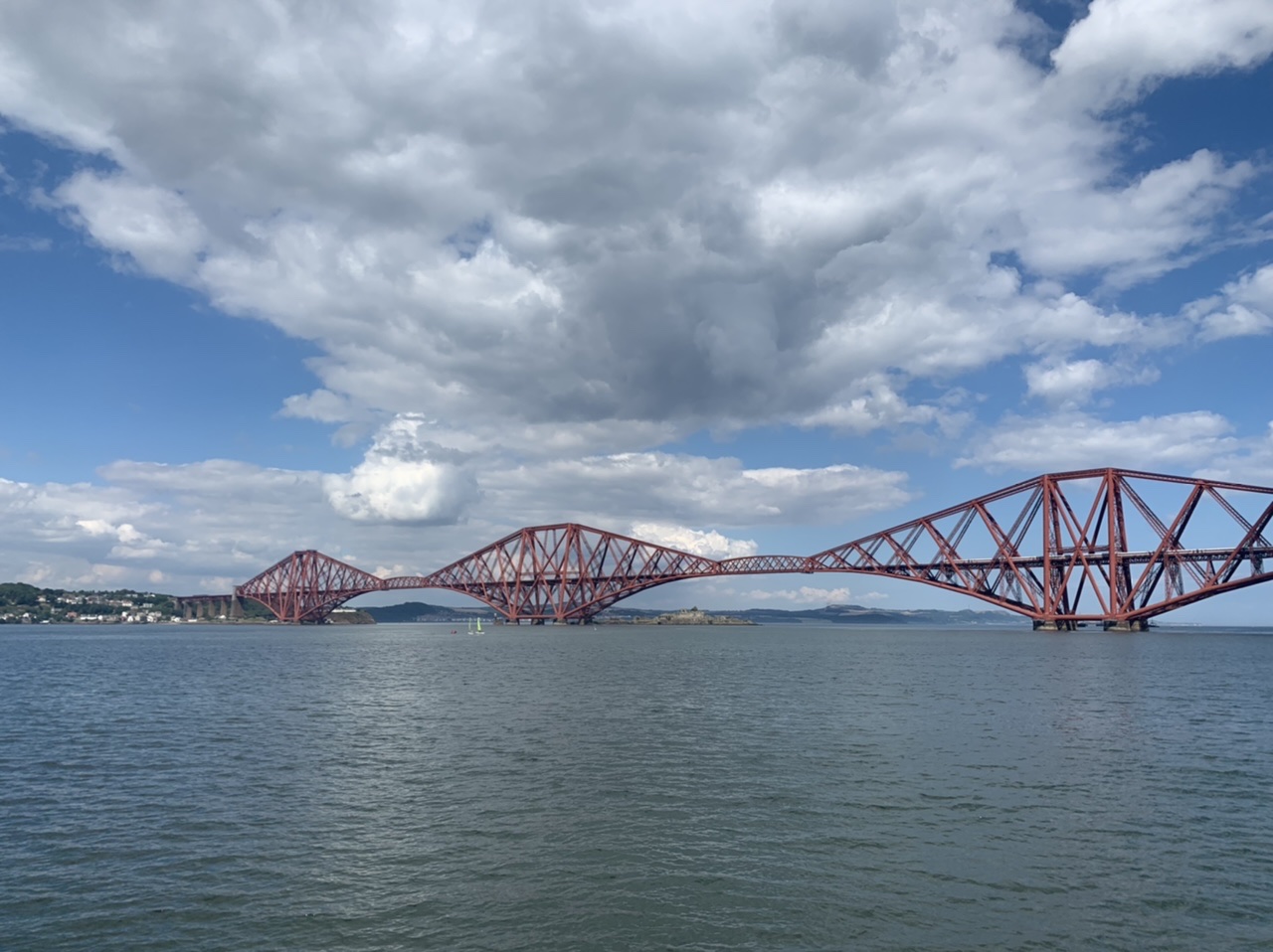 Ein super leckeres Frühstücksbuffet stärkt uns für die nun doch noch kommende letzte Etappe. Plus 75km und 900hm,weil wir nicht in den Bus gepasst haben 😂… Aber das Wetter ist heute mit uns, und wir freuen uns, mit dem Rad in Edinburgh einzurollen anstatt dem Bus. Es geht gemütlich aus der Stadt Perth hinaus über einsame Wiesen, Felder und Hügel, nach 50km erreichen wir Inverkeithing, die Stadt an der die drei Brücken über den Firth of Forth führen. Die Eisenbahnbrücke ist die älteste und beeindruckendste der Brücken. Sie ist eine 130 Jahre alte Stahlbrücke mit vier anmutigen Auslegern, auf welche die Querträger aufgelegt sind als Gerberträger. Sie hatte 30 Jahre mit 521m Länge die größte Spannweite aller Brücken weltweit, bis 1920 die Québec-Brücke gebaut wurde. Daneben verlaufen die alte Straßenbrücke aus den 60ern als Hangeseilbrücke und die neuere Autobahnbrücke. Wir nutzen die mittlere, Mary sieht mal wieder nicht, dass der linke Radweg gesperrt ist und die Radler die rechte Seite nehmen sollen, und beschließt die Hauptspur zu nehmen. Da fast kein Verkehr ist, sag ich mal nichts und radel einfach hinterher. Ein Bus hinter uns hupt ungeduldig und wir weichen auf die abgesperrte zweite Spur aus. In der Mitte der Brücke kommt ein blinkendes Wartungsfahrzeug auf uns zu. Die Männer rufen aufgeregt, wir sollen doch den Radweg nehmen, nur in der Mitte der Brücke ist kein Spurwechsel möglich! Mary fährt einfach weiter, und umkehren möchte ich auch nicht mehr. Also rufe ich kurz zu den Männern rüber „Sorry, I can’t hear you!“ und hechte hinter meiner Schwester hinterher🙈… Am Südufer halten wir kurz an um einen älteren Herren zu bitten unser Finisher-Foto zu schießen und er erzählt uns die Geschichte der Brücken und dass es in der Nähe Seerobben, Delfine und Wale zu beobachten gibt. Jetzt geht es noch 15km auf feinstem Gravelbelag entlang des Meeres in die Stadt hinein. Es sieht noch sehr ländlich aus, und wir können gar nicht glauben, dass Edinburgh solch eine große Stadt ist. Der Campingplatz liegt nicht weit vom Meer, und ist ausgebucht. Wir probieren es trotzdem und lassen alle unsere Überredungskünste spielen. Letztendlich lässt uns der freundliche Mann auf der Camperwiese auf der Anhöhe zelten, weit genug entfernt von allen anderen. Welch ein Glück, der andere Campingplatz wäre nochmal 16km weiter gewesen und den Stadthügel hoch. Wie bergig Edinburgh ist, sehen wir bei der Einfahrt in die Altstadt mit dem Doppeldecker. Wir haben noch einen schönen Abend im Pub und einer Event location, die uns ans Oktoberfest erinnert. Aber egal, Frau kommt nur einmal im Leben nach 4.400 km und 35.000 Hm in Edinburgh an!