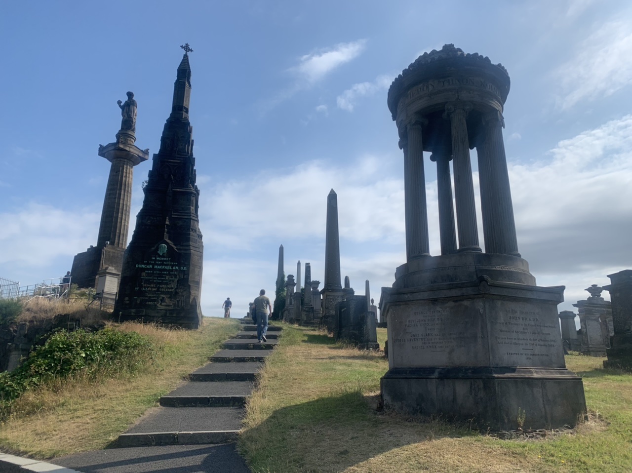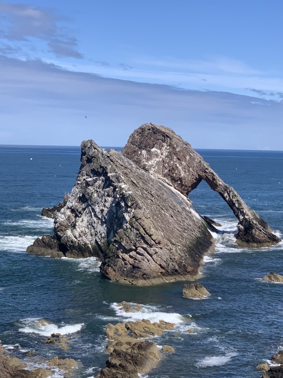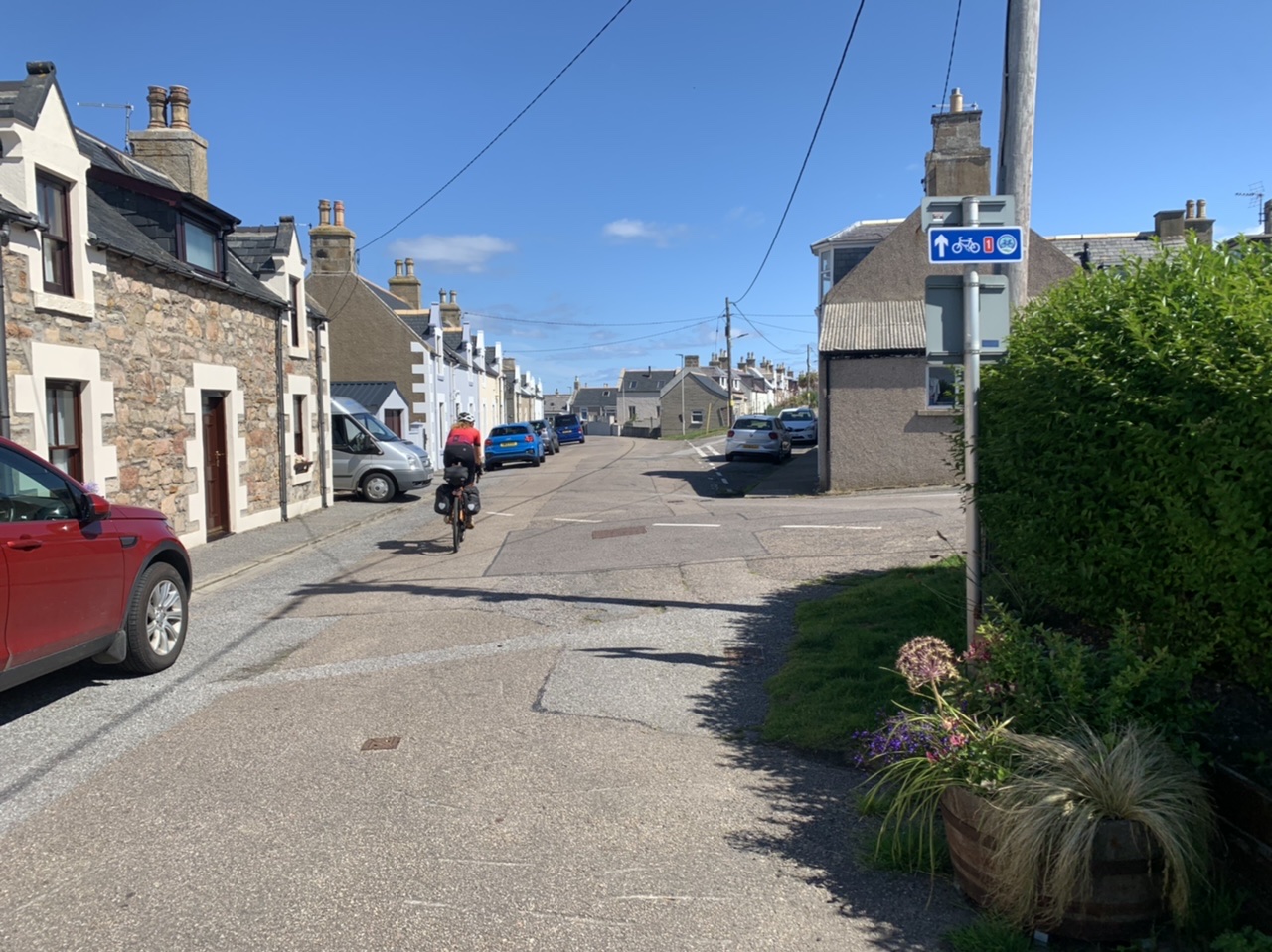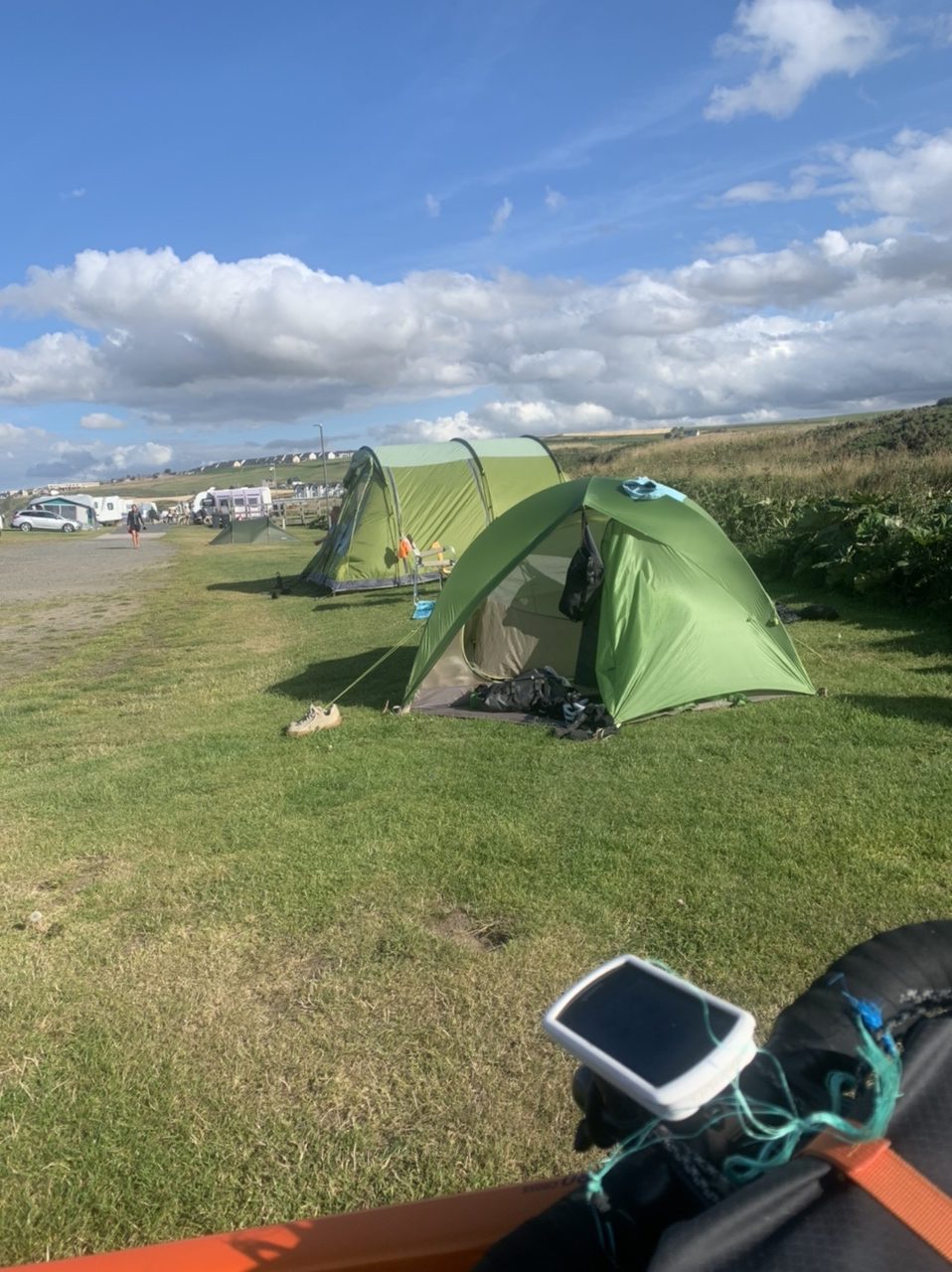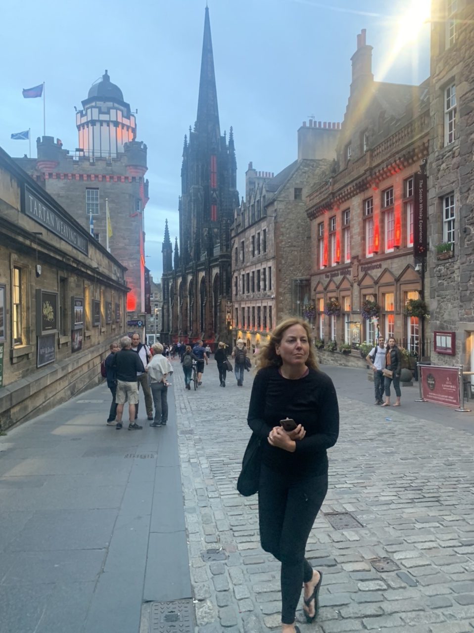 Ein super leckeres Frühstücksbuffet stärkt uns für die nun doch noch kommende letzte Etappe. Plus 75km und 900hm,weil wir nicht in den Bus gepasst haben 😂… Aber das Wetter ist heute mit uns, und wir freuen uns, mit dem Rad in Edinburgh einzurollen anstatt dem Bus. Es geht gemütlich aus der Stadt Perth hinaus über einsame Wiesen, Felder und Hügel, nach 50km erreichen wir Inverkeithing, die Stadt an der die drei Brücken über den Firth of Forth führen. Die Eisenbahnbrücke ist die älteste und beeindruckendste der Brücken. Sie ist eine 130 Jahre alte Stahlbrücke mit vier anmutigen Auslegern, auf welche die Querträger aufgelegt sind als Gerberträger. Sie hatte 30 Jahre mit 521m Länge die größte Spannweite aller Brücken weltweit, bis 1920 die Québec-Brücke gebaut wurde. Daneben verlaufen die alte Straßenbrücke aus den 60ern als Hangeseilbrücke und die neuere Autobahnbrücke. Wir nutzen die mittlere, Mary sieht mal wieder nicht, dass der linke Radweg gesperrt ist und die Radler die rechte Seite nehmen sollen, und beschließt die Hauptspur zu nehmen. Da fast kein Verkehr ist, sag ich mal nichts und radel einfach hinterher. Ein Bus hinter uns hupt ungeduldig und wir weichen auf die abgesperrte zweite Spur aus. In der Mitte der Brücke kommt ein blinkendes Wartungsfahrzeug auf uns zu. Die Männer rufen aufgeregt, wir sollen doch den Radweg nehmen, nur in der Mitte der Brücke ist kein Spurwechsel möglich! Mary fährt einfach weiter, und umkehren möchte ich auch nicht mehr. Also rufe ich kurz zu den Männern rüber „Sorry, I can’t hear you!“ und hechte hinter meiner Schwester hinterher🙈… Am Südufer halten wir kurz an um einen älteren Herren zu bitten unser Finisher-Foto zu schießen und er erzählt uns die Geschichte der Brücken und dass es in der Nähe Seerobben, Delfine und Wale zu beobachten gibt. Jetzt geht es noch 15km auf feinstem Gravelbelag entlang des Meeres in die Stadt hinein. Es sieht noch sehr ländlich aus, und wir können gar nicht glauben, dass Edinburgh solch eine große Stadt ist. Der Campingplatz liegt nicht weit vom Meer, und ist ausgebucht. Wir probieren es trotzdem und lassen alle unsere Überredungskünste spielen. Letztendlich lässt uns der freundliche Mann auf der Camperwiese auf der Anhöhe zelten, weit genug entfernt von allen anderen. Welch ein Glück, der andere Campingplatz wäre nochmal 16km weiter gewesen und den Stadthügel hoch. Wie bergig Edinburgh ist, sehen wir bei der Einfahrt in die Altstadt mit dem Doppeldecker. Wir haben noch einen schönen Abend im Pub und einer Event location, die uns ans Oktoberfest erinnert. Aber egal, Frau kommt nur einmal im Leben nach 4.400 km und 35.000 Hm in Edinburgh an!