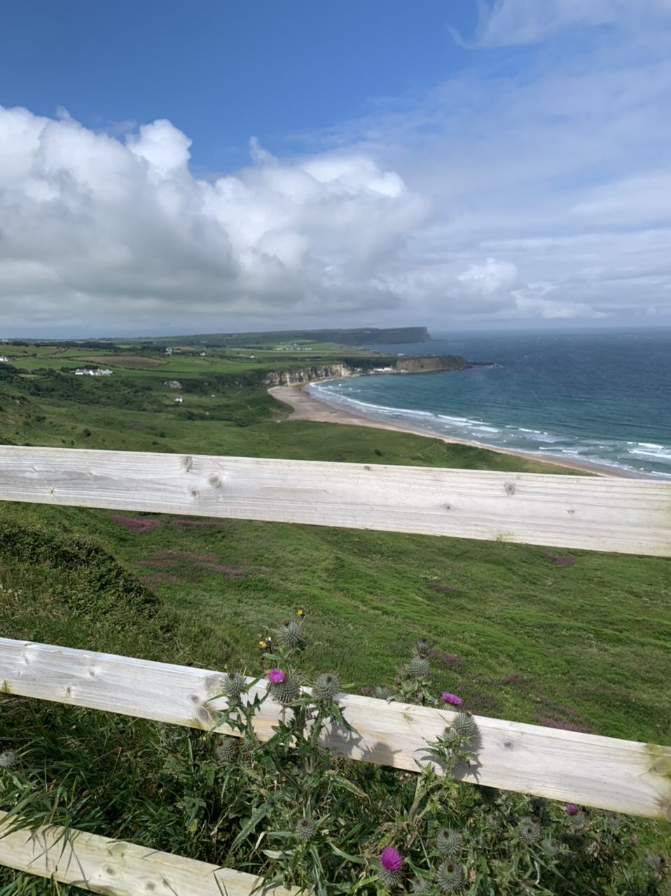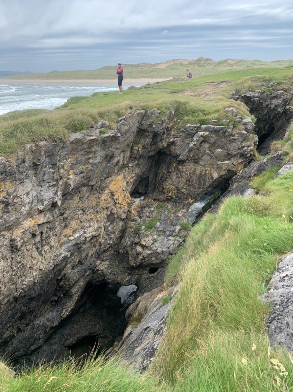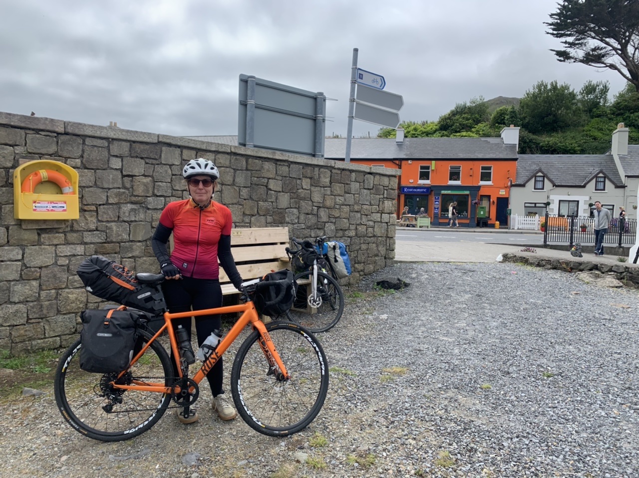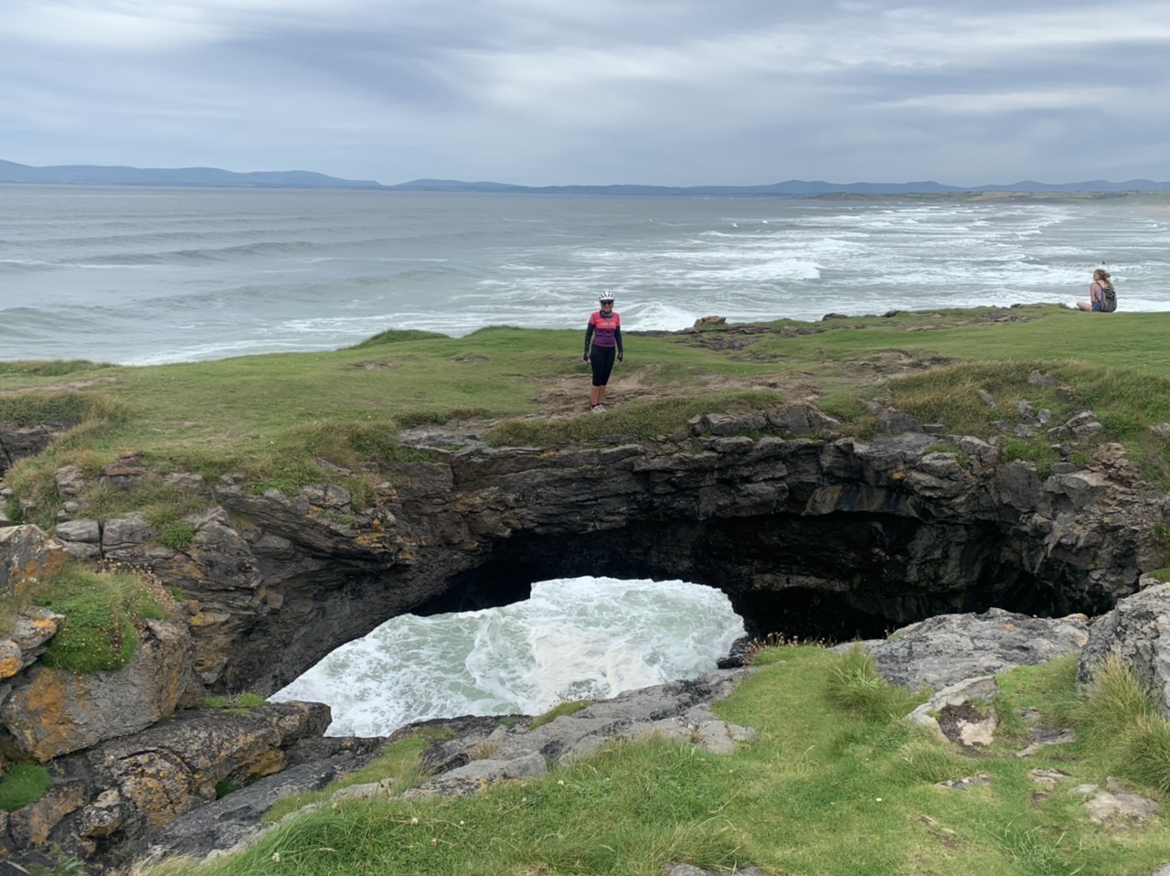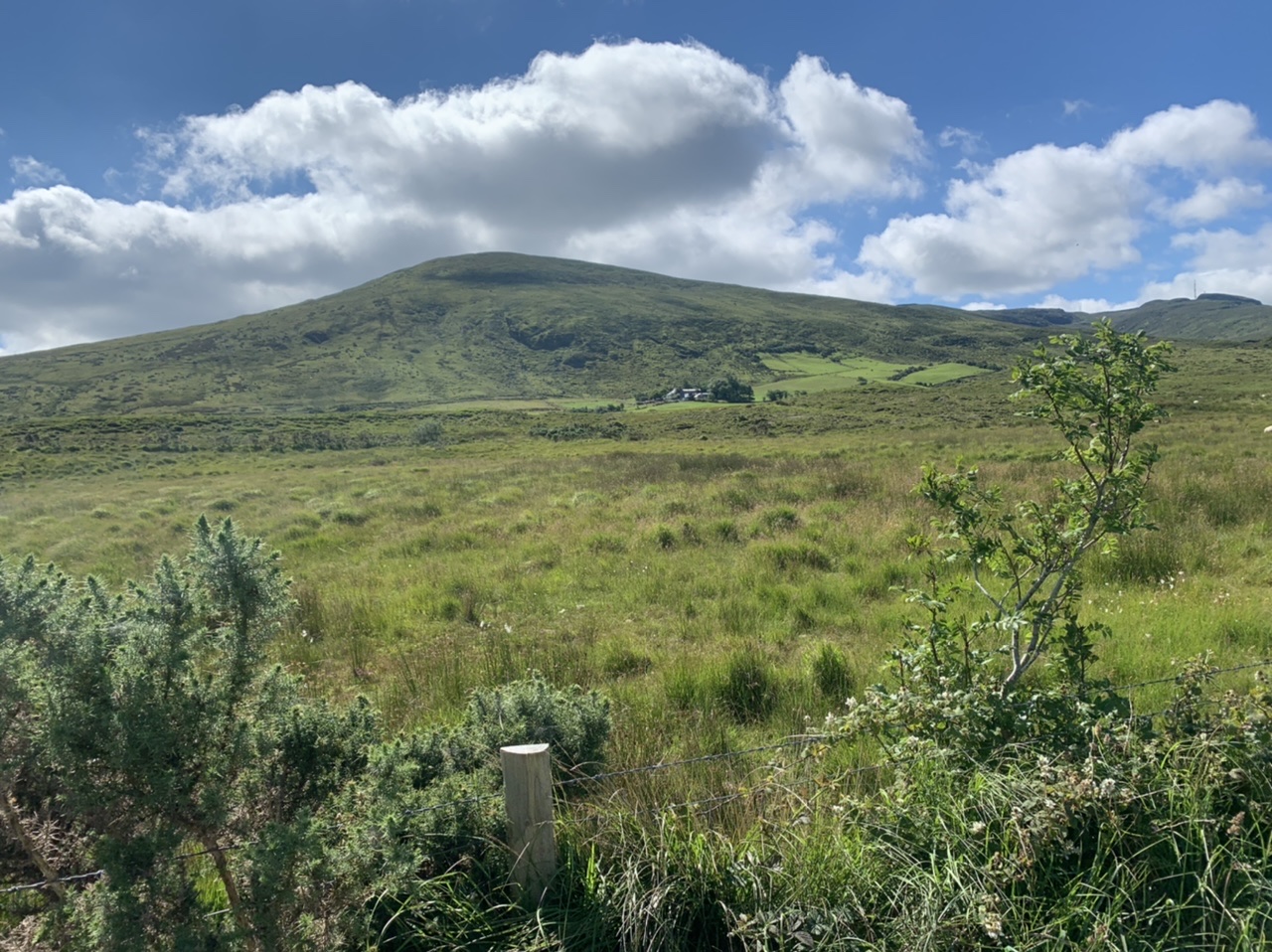 Am nächsten Morgen gehts nach einigen Plaudereien tiefer in die Berge. Endlich taucht die Sonne auf und es wird mal so richtig warm hier. Great. Wir schwitzen zwar aber beklagen uns garantiert nicht. Die Ausblicke in die Berge sind gigantisch schön, weite Wiesen, dann Wälder und obendrüber ein paar Felsen. Alles unbewohnt und frei. Und wieder nahezu kein Verkehr. Mir gefällt hier in den Bergen (unser Pass war nur 380 m hoch und kam uns vor wie in den Alpen). Es ist ein Traum. Wir fahren happy bergab, durch zwei kleine Dörfer, holen uns ein Eis und weiter geht es ordentlich bergauf bis wir irgendwann wieder am Kamm des Berges ankommen und auf der anderen Seite das blaue Meer mit der schottischen Insel Arran sehen. In Ayr finden wir keinen Campingplatz aber wir werden weitergeleitet bis Prestwick. Dort gibt es einen Caravanpark der auch Zelte aufnimmt, direkt an den Dünen. Wir kriegen vin der Mitarbeiterin Brot und ein einheimisches Getränk in der Dose geschenkt. Liane springt ins Meer und ich mache einen Spaziergang am Meer. Endlich mal Sommer hier, er kann gerne noch bleiben. Abends setzt sich der Pubbesitzer zu uns und gibt Tipps, wo wir hinfahren sollen. Er ist etwas überdreht, hat aber Witz und gibt uns einen Babyguinness aus. Das ist ein Bailey’s mit Tiamaria. 😅😋