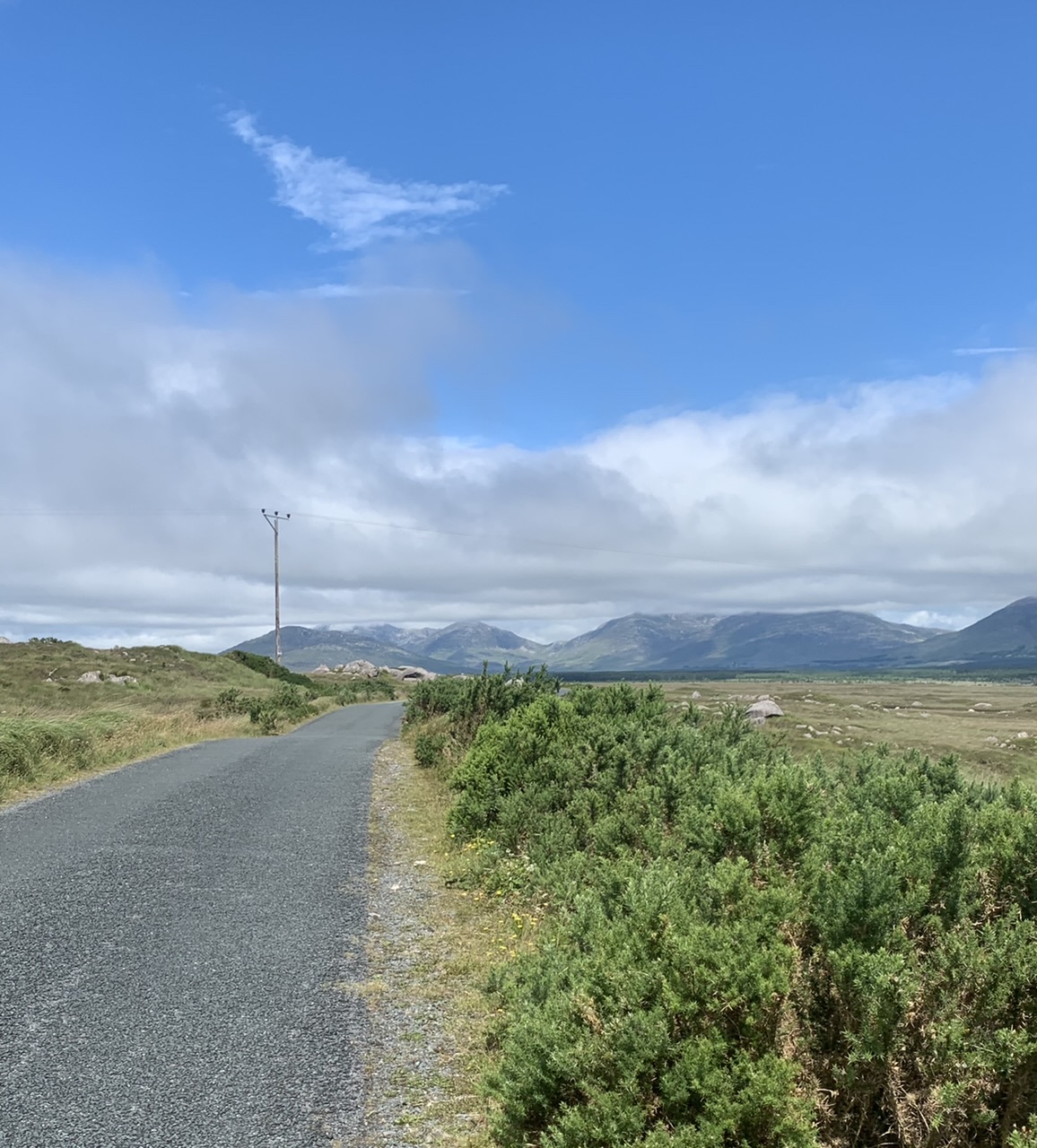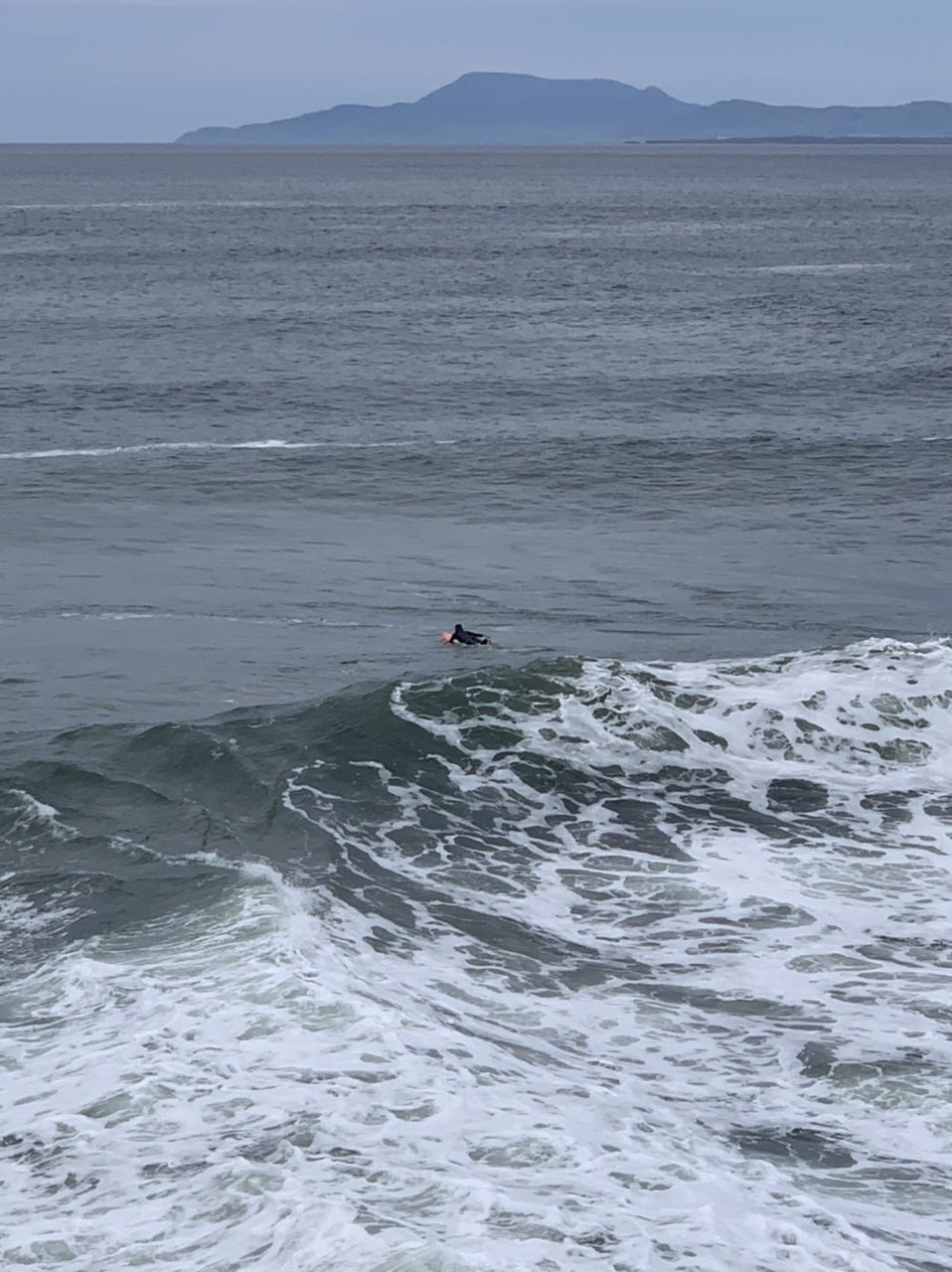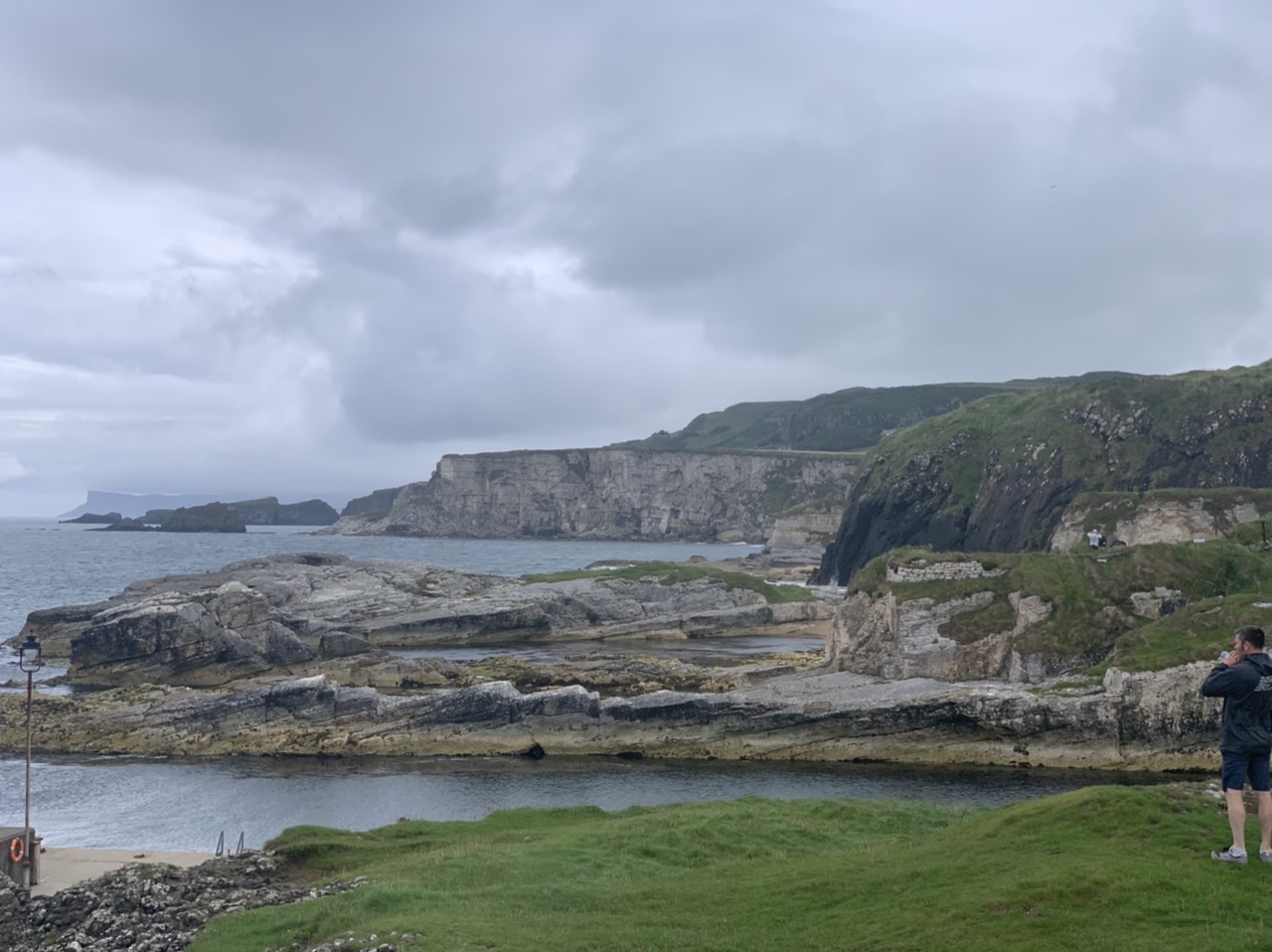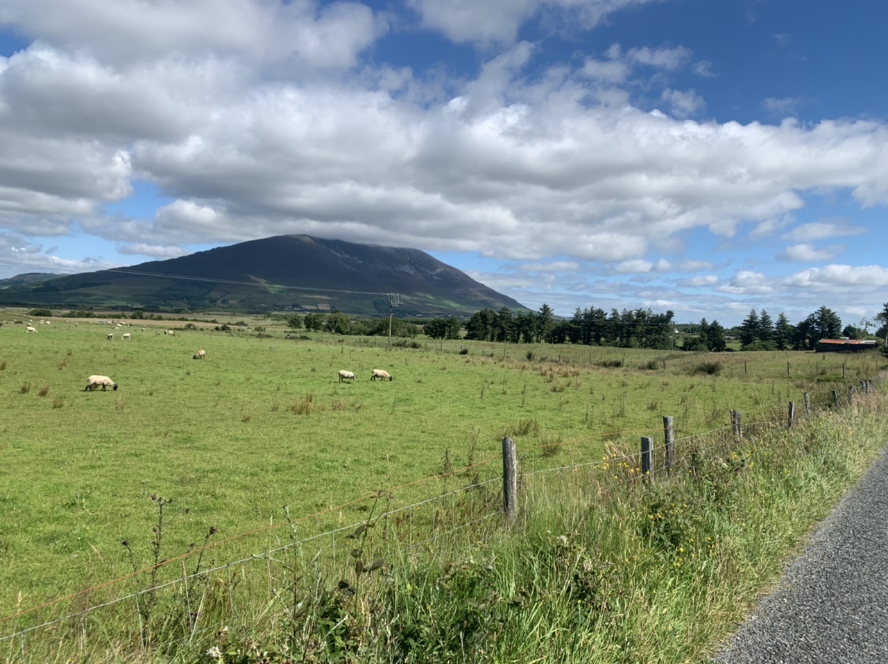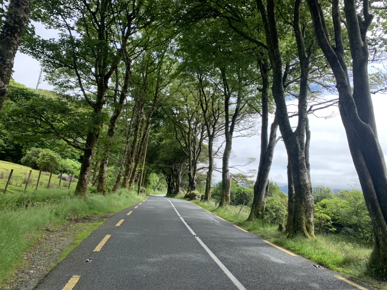 Am nächsten Morgen gehts nach einigen Plaudereien tiefer in die Berge. Endlich taucht die Sonne auf und es wird mal so richtig warm hier. Great. Wir schwitzen zwar aber beklagen uns garantiert nicht. Die Ausblicke in die Berge sind gigantisch schön, weite Wiesen, dann Wälder und obendrüber ein paar Felsen. Alles unbewohnt und frei. Und wieder nahezu kein Verkehr. Mir gefällt hier in den Bergen (unser Pass war nur 380 m hoch und kam uns vor wie in den Alpen). Es ist ein Traum. Wir fahren happy bergab, durch zwei kleine Dörfer, holen uns ein Eis und weiter geht es ordentlich bergauf bis wir irgendwann wieder am Kamm des Berges ankommen und auf der anderen Seite das blaue Meer mit der schottischen Insel Arran sehen. In Ayr finden wir keinen Campingplatz aber wir werden weitergeleitet bis Prestwick. Dort gibt es einen Caravanpark der auch Zelte aufnimmt, direkt an den Dünen. Wir kriegen vin der Mitarbeiterin Brot und ein einheimisches Getränk in der Dose geschenkt. Liane springt ins Meer und ich mache einen Spaziergang am Meer. Endlich mal Sommer hier, er kann gerne noch bleiben. Abends setzt sich der Pubbesitzer zu uns und gibt Tipps, wo wir hinfahren sollen. Er ist etwas überdreht, hat aber Witz und gibt uns einen Babyguinness aus. Das ist ein Bailey’s mit Tiamaria. 😅😋