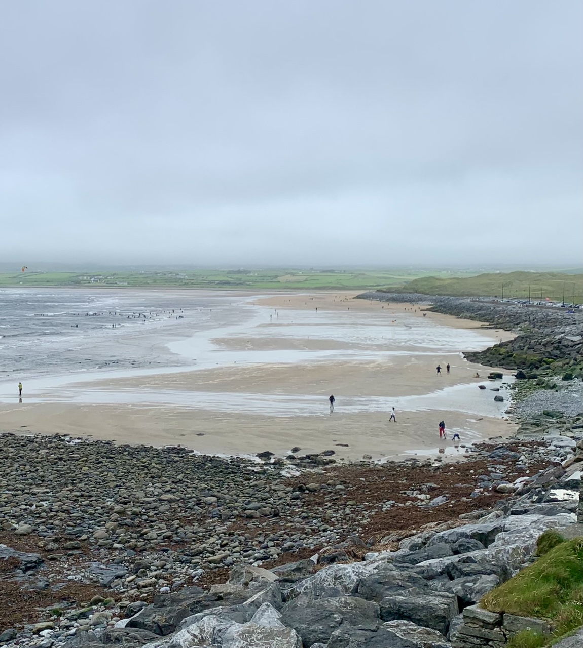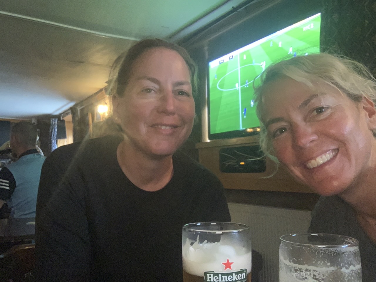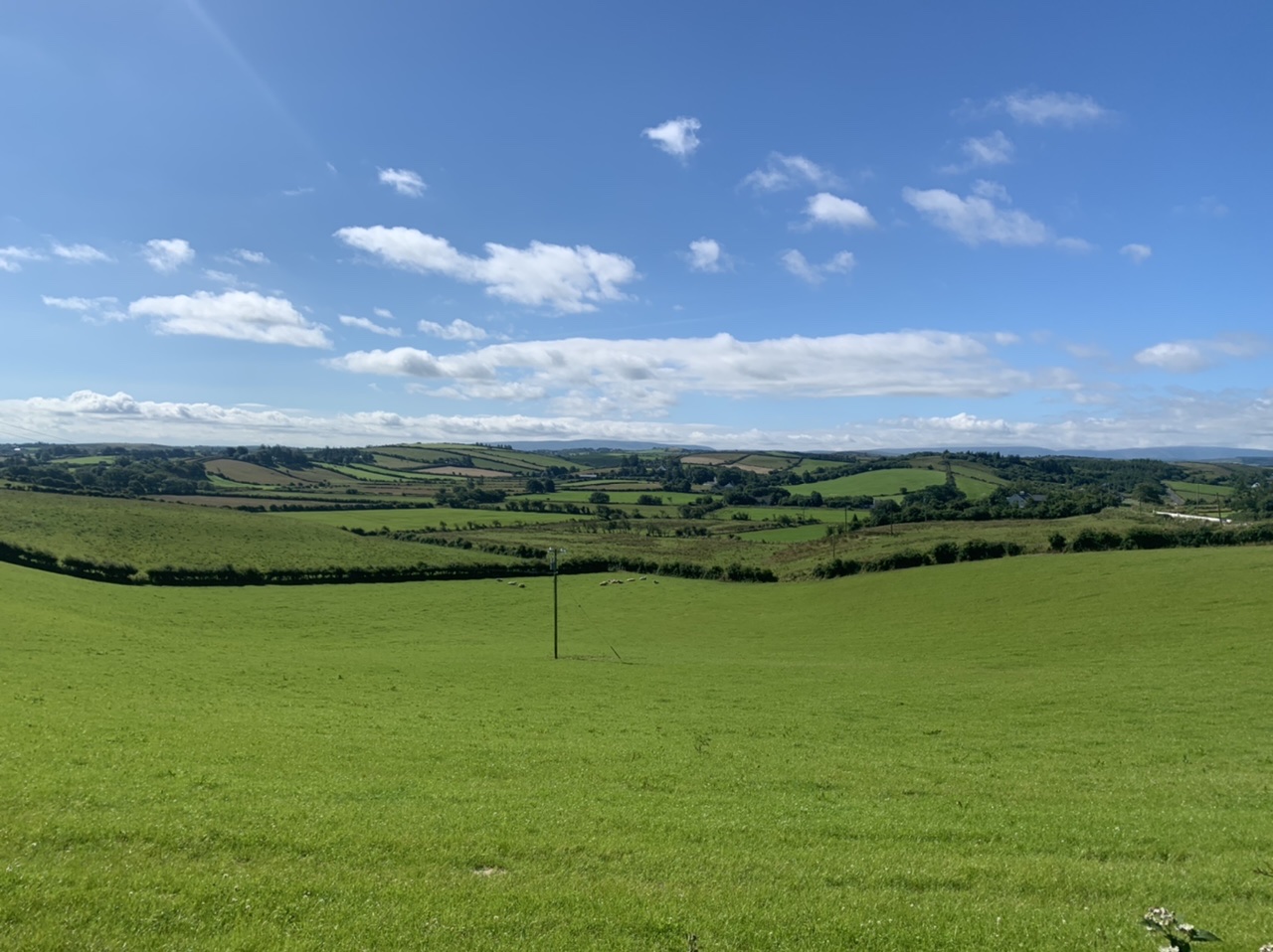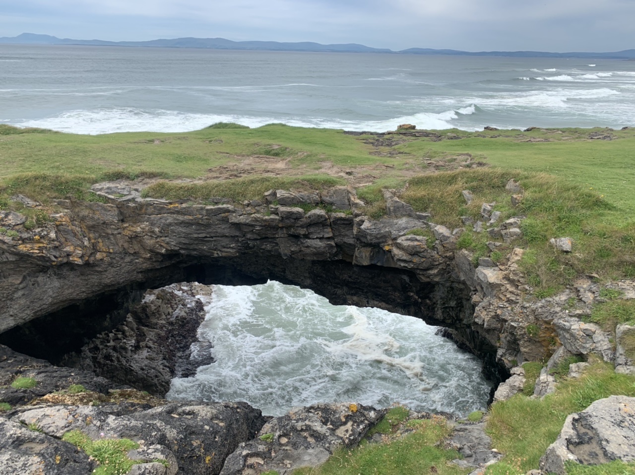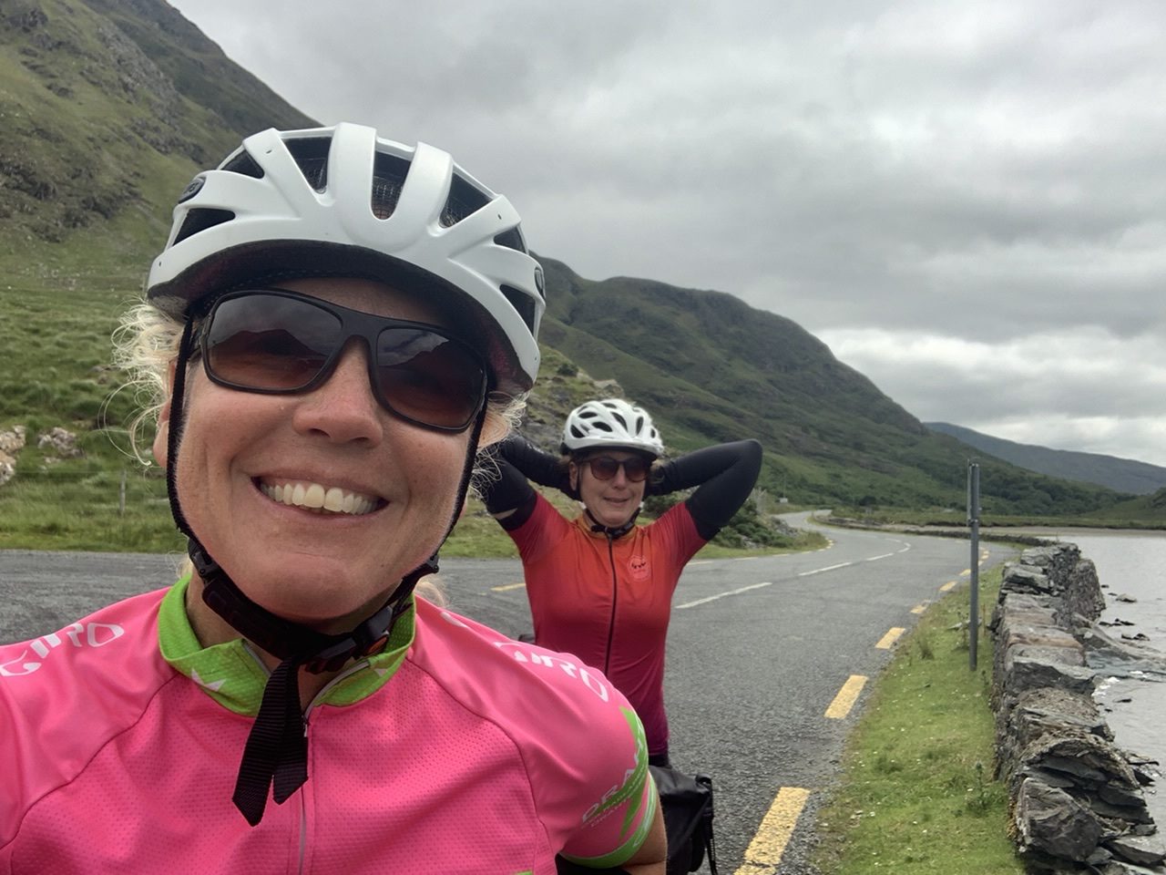 Am nächsten Morgen gehts nach einigen Plaudereien tiefer in die Berge. Endlich taucht die Sonne auf und es wird mal so richtig warm hier. Great. Wir schwitzen zwar aber beklagen uns garantiert nicht. Die Ausblicke in die Berge sind gigantisch schön, weite Wiesen, dann Wälder und obendrüber ein paar Felsen. Alles unbewohnt und frei. Und wieder nahezu kein Verkehr. Mir gefällt hier in den Bergen (unser Pass war nur 380 m hoch und kam uns vor wie in den Alpen). Es ist ein Traum. Wir fahren happy bergab, durch zwei kleine Dörfer, holen uns ein Eis und weiter geht es ordentlich bergauf bis wir irgendwann wieder am Kamm des Berges ankommen und auf der anderen Seite das blaue Meer mit der schottischen Insel Arran sehen. In Ayr finden wir keinen Campingplatz aber wir werden weitergeleitet bis Prestwick. Dort gibt es einen Caravanpark der auch Zelte aufnimmt, direkt an den Dünen. Wir kriegen vin der Mitarbeiterin Brot und ein einheimisches Getränk in der Dose geschenkt. Liane springt ins Meer und ich mache einen Spaziergang am Meer. Endlich mal Sommer hier, er kann gerne noch bleiben. Abends setzt sich der Pubbesitzer zu uns und gibt Tipps, wo wir hinfahren sollen. Er ist etwas überdreht, hat aber Witz und gibt uns einen Babyguinness aus. Das ist ein Bailey’s mit Tiamaria. 😅😋