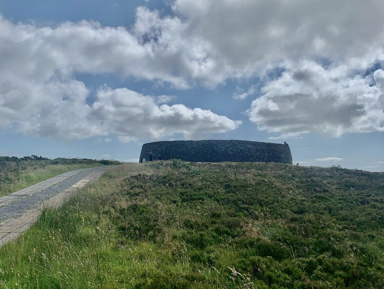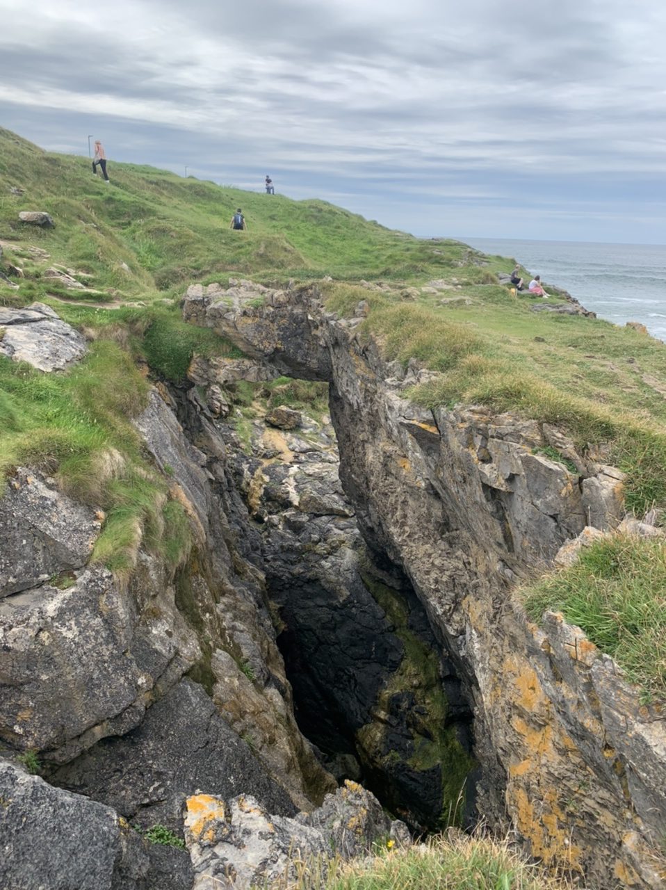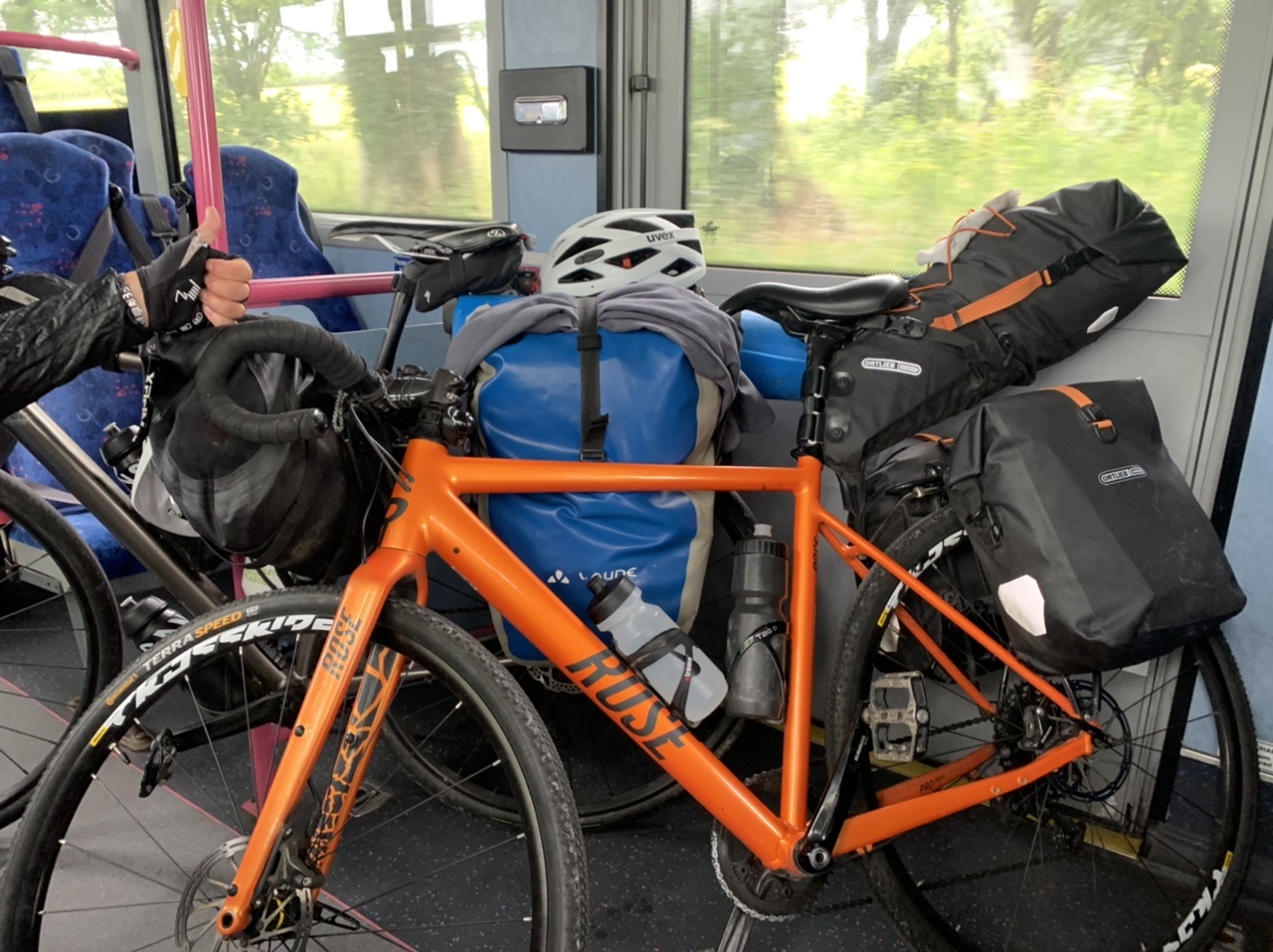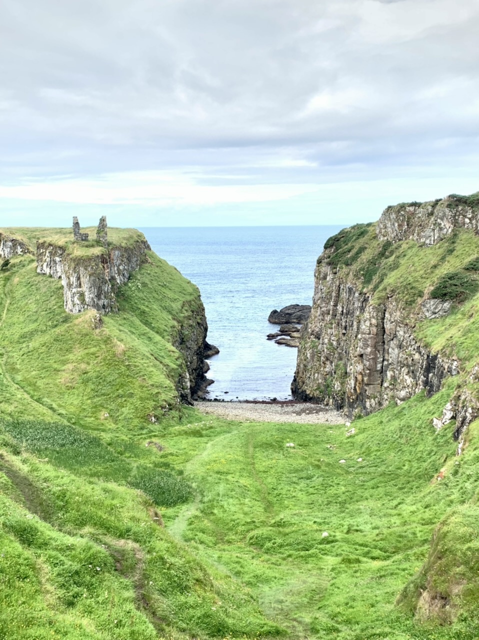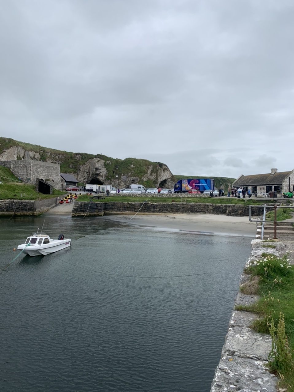 Am nächsten Morgen gehts nach einigen Plaudereien tiefer in die Berge. Endlich taucht die Sonne auf und es wird mal so richtig warm hier. Great. Wir schwitzen zwar aber beklagen uns garantiert nicht. Die Ausblicke in die Berge sind gigantisch schön, weite Wiesen, dann Wälder und obendrüber ein paar Felsen. Alles unbewohnt und frei. Und wieder nahezu kein Verkehr. Mir gefällt hier in den Bergen (unser Pass war nur 380 m hoch und kam uns vor wie in den Alpen). Es ist ein Traum. Wir fahren happy bergab, durch zwei kleine Dörfer, holen uns ein Eis und weiter geht es ordentlich bergauf bis wir irgendwann wieder am Kamm des Berges ankommen und auf der anderen Seite das blaue Meer mit der schottischen Insel Arran sehen. In Ayr finden wir keinen Campingplatz aber wir werden weitergeleitet bis Prestwick. Dort gibt es einen Caravanpark der auch Zelte aufnimmt, direkt an den Dünen. Wir kriegen vin der Mitarbeiterin Brot und ein einheimisches Getränk in der Dose geschenkt. Liane springt ins Meer und ich mache einen Spaziergang am Meer. Endlich mal Sommer hier, er kann gerne noch bleiben. Abends setzt sich der Pubbesitzer zu uns und gibt Tipps, wo wir hinfahren sollen. Er ist etwas überdreht, hat aber Witz und gibt uns einen Babyguinness aus. Das ist ein Bailey’s mit Tiamaria. 😅😋