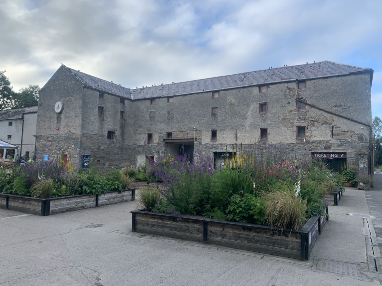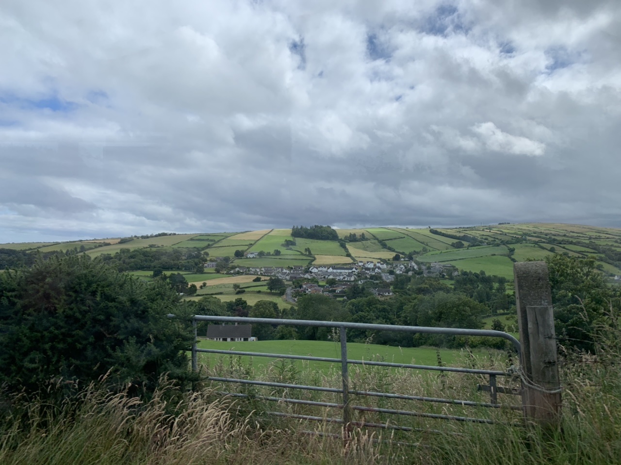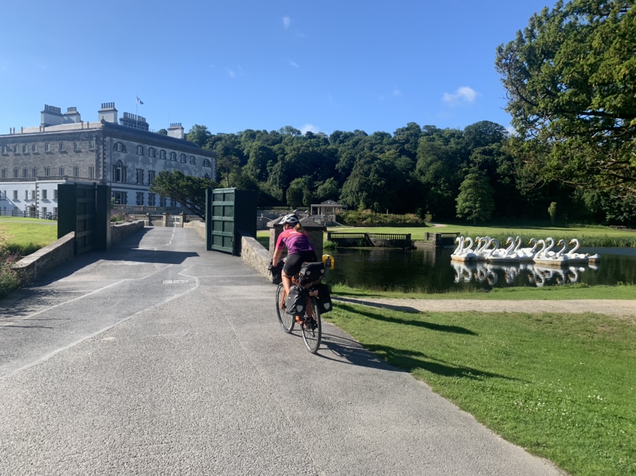 Wir erwachen in Sandhead auf dem Bauplatz am Strand mit Sprühregen, der sich aber zum Glück dann verp…st. Es war witzig, abseits der Mobilehomes auf dem zukünftigen Bauplatz des jungen Betreibers zu schlafen. Wir packen und machen uns auf dem Weg am Meer entlang, erst mit Mitwind aber bald mit heftigen Gegenwind. Gemütlich schiebe ich mich die Hügel hoch, schöne Wiesen mit schwarzen Kuhherden, ein paar Schafe, viele alte Steinhäuser am Meer. Schließlich verlassen wir das Meer und fahren quer durch Wälder und übers Land. Der Radweg ist super, kaum Verkehr und gute Straßen. Wir kommen nach Wigtown, kaufen im Coop Cola und O-Saft zur Stärkung. Dann gehts weiter aufwärts durch endlose Kiefernwälder, die leider auch unter der Trockenheit leiden mussten. Wieder ein toller Weg, kaum Verkehr, schöne Flüsse und kleine Dörfer. Unser Ziel Glentrool liegt mitten im Wald. Der Campingplatz bevölkert sich auch mit ein paar Radlern. Ein Niederländer und ein Engländer aus London sind mit dem Rad allein unterwegs. Abends gehen wir ins nächste Pub und bestellen einen Glendall Whiskey. Der Weg zum Pub ist mit bunten Steinen verschönert worden. Eine tolle Gegend. Manchmal habe ich das Gefühl schonmal hier gewesen zu sein. Ich habe vielleicht zu viele Bücher gelesen, die Schottland gehandelt haben.