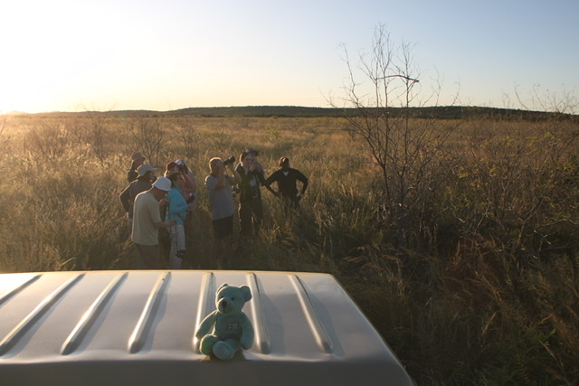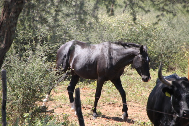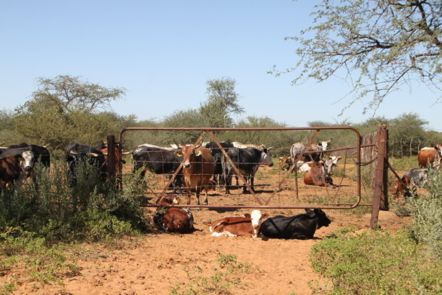 Am nächsten Morgen erwartet uns ein liebevolles Osterfrühstück mit gefärbten Eiern, Sauerteigbrot, Kaktusmarmelade, Schinken und Käse. Danach zeigt uns Hans die Farm inkl. seiner Rinder, welche in fünf Herden auf insgesamt 7.000 Hektar aufgeteilt sind. Mit einem Truck fahren wir zur Herde, auf dem Weg erklärt uns Hans noch, wie die Teufelskralle aussieht, wir sammeln einen Skarabäus (Mistkäfer) auf und bekommen erklärt, wie man die sehr beliebten Nussplanzen erkennt, dessen Nüsse hier auf den Wiesen gesammelt werden. Die Herde ist wirklich beeindruckend, viele Kühe haben junge Kälber, alle schauen uns neugierig aber mit ein wenig Respekt an. Als 2. Standbein wird seit 3 Jahren eine Plantage mit Pekanusbäumen aufgezüchtet, sie brauchen 10 Jahre um Früchte zu tragen. Ich hoffe, das Projekt läuft gut an.