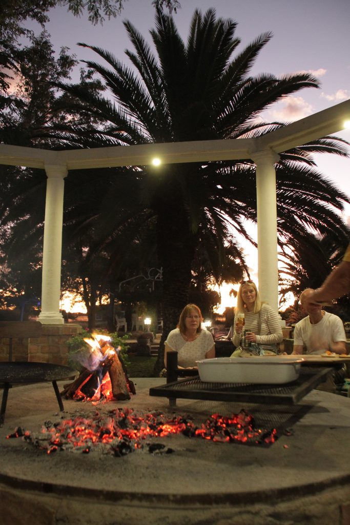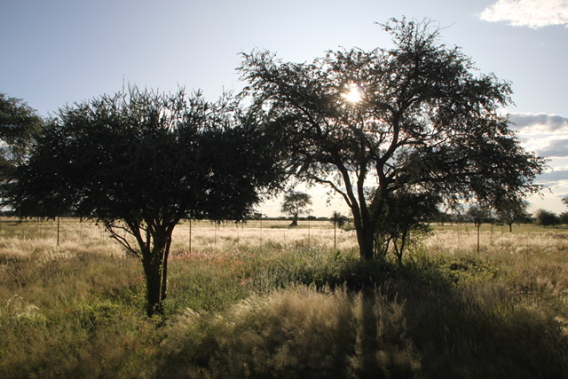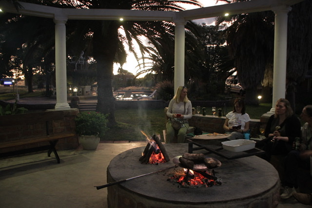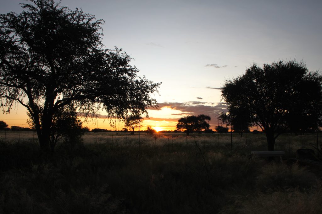 Nachmittags wandern wir über die Plantage an den Feldwegen entlang und sehen eine Zwergohreule, Königswitwen (sehr langer Schwanz), Erdhörnchen und die kleine Schaf- sowie Straußenherde der Farm. Nach dem Abendessen setzen wir uns um ein großes Osterfeuer, welches gewaltige Hitze ausstrahlt. Der Sternenhimmel ist mega gut zu sehen, irgendwie scheinen die Sterne hier näher als in Deutschland zu sein.