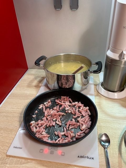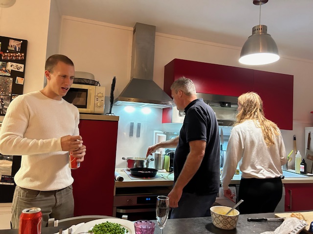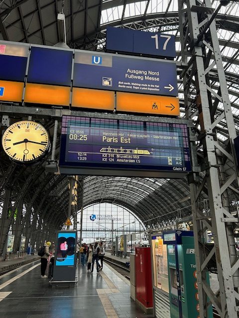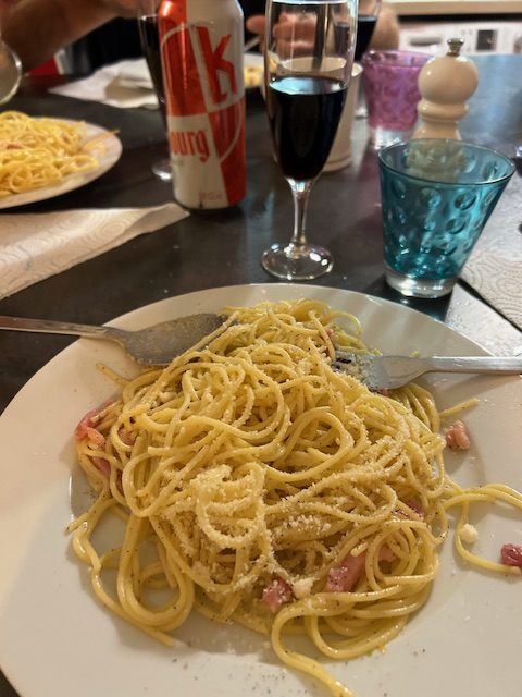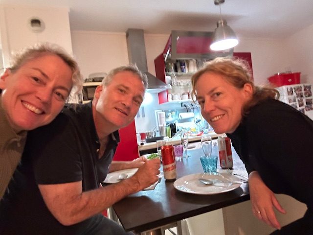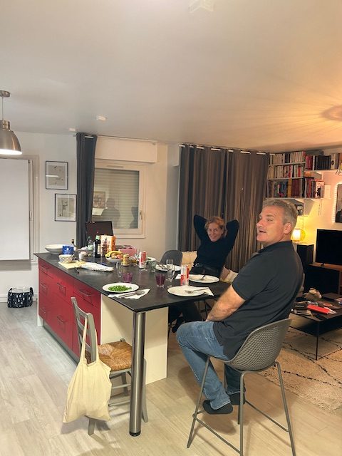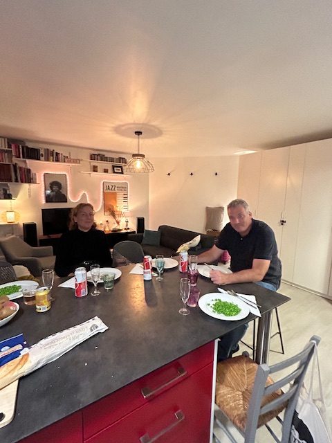 Ano studiert seit September 2023 an der Sorbonne Soziologie. Ich war noch nie da. Das wird endlich mal Zeit, denke ich und buche mir einen ICE von FRA nach PAR. Um 8:09 gehts hier am Südbahnhof los, um 12:52 bin ich am Gare de L´Est. Alles für EUR 65,95. Cool wie immer steht sie hinter der Absperrung und wartet auf mich. Wir gehen erstmal in ihrer Nachbarschaft in eine Falafelbar und holen uns eine Stärkung. Klein und sympatisch, die Bude. Da es immer noch weiterregnet, verschieben wir uns in ein Café um die Ecke, dort erstmal einen Chai Latte (Ano) und einen Flat White (ich), einfach gechillt Leute gucken. Wir verstehen uns wie immer. So schön. Danach finden wir unser AirBnB in Belleville (unweit) auf Anhieb, haben aber Probleme den in einem Fahrrad versteckten Schlüsselkasten zu finden. Sehr gut getarnt, typisch Paris, kenne ich ja, denke ich mir. Das Appartment in einem weißen 80er Bau in einer Seitenstrasse, enger Aufzug, muffiger Flur mit türkisfarbenen Teppich an den Wänden , aber innen gemütlich eingerichtet: offene Küche, kuscheliges Sofa, modernes Bad, liebevolle Einrichtung. Unser Gastgeber heißt xxx. Spannend so zu erforschen, wer eigentlich dort wohnt, was er mag (definitv Musik und gutes Essen). Wir fühlen uns sofort wohl. Li und Pat kommen erst gegen 16:00, sie waren ein paar Tage in der Normandie. Ihr Corsa parkt sicher in der Tiefgarage. Da wir alle müde sind, gehen Pat und ich nur noch einkaufen in der Nachbarschaft (regnet immer noch), dann kochen wir Spaghetti Carbonara nach Jacques Rezept. jacques Anabelles Freund kommt gegen acht auch zum Essen. Er macht eine Ausbildung bei der Pariser Feuerwehr. Zur Pasta einen vin rouge. Danach Fromage. Alles schön gechillt hier in Paris.