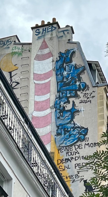 Ano studiert seit September 2023 an der Sorbonne Soziologie. Ich war noch nie da. Das wird endlich mal Zeit, denke ich und buche mir einen ICE von FRA nach PAR. Um 8:09 gehts hier am Südbahnhof los, um 12:52 bin ich am Gare de L´Est. Alles für EUR 65,95. Cool wie immer steht sie hinter der Absperrung und wartet auf mich. Wir gehen erstmal in ihrer Nachbarschaft in eine Falafelbar und holen uns eine Stärkung. Klein und sympatisch, die Bude. Da es immer noch weiterregnet, verschieben wir uns in ein Café um die Ecke, dort erstmal einen Chai Latte (Ano) und einen Flat White (ich), einfach gechillt Leute gucken. Wir verstehen uns wie immer. So schön. Danach finden wir unser AirBnB in Belleville (unweit) auf Anhieb, haben aber Probleme den in einem Fahrrad versteckten Schlüsselkasten zu finden. Sehr gut getarnt, typisch Paris, kenne ich ja, denke ich mir. Das Appartment in einem weißen 80er Bau in einer Seitenstrasse, enger Aufzug, muffiger Flur mit türkisfarbenen Teppich an den Wänden , aber innen gemütlich eingerichtet: offene Küche, kuscheliges Sofa, modernes Bad, liebevolle Einrichtung. Unser Gastgeber heißt xxx. Spannend so zu erforschen, wer eigentlich dort wohnt, was er mag (definitv Musik und gutes Essen). Wir fühlen uns sofort wohl. Li und Pat kommen erst gegen 16:00, sie waren ein paar Tage in der Normandie. Ihr Corsa parkt sicher in der Tiefgarage. Da wir alle müde sind, gehen Pat und ich nur noch einkaufen in der Nachbarschaft (regnet immer noch), dann kochen wir Spaghetti Carbonara nach Jacques Rezept. jacques Anabelles Freund kommt gegen acht auch zum Essen. Er macht eine Ausbildung bei der Pariser Feuerwehr. Zur Pasta einen vin rouge. Danach Fromage. Alles schön gechillt hier in Paris.