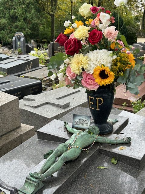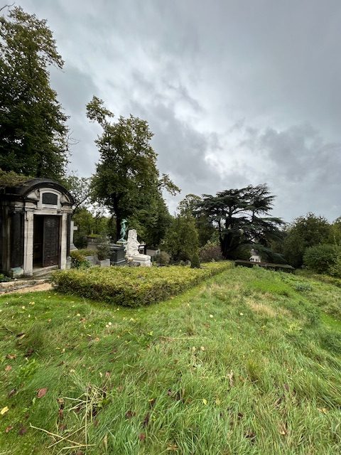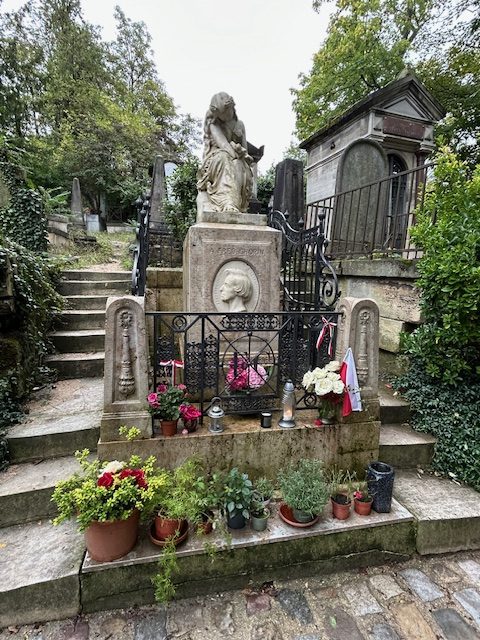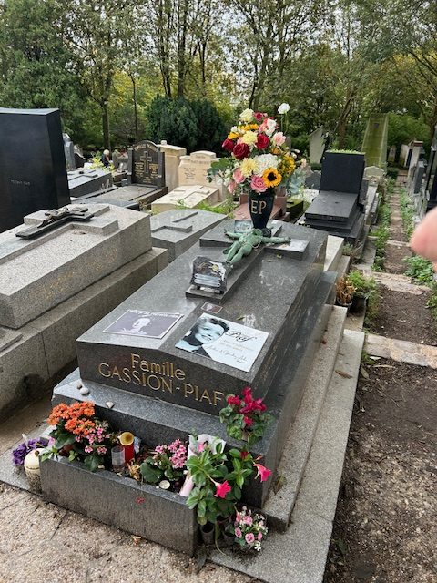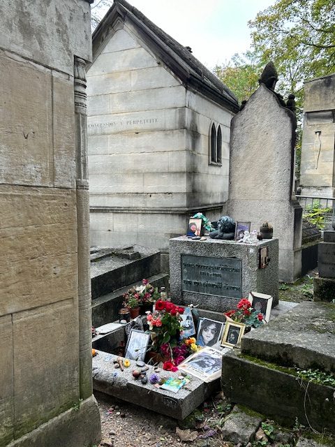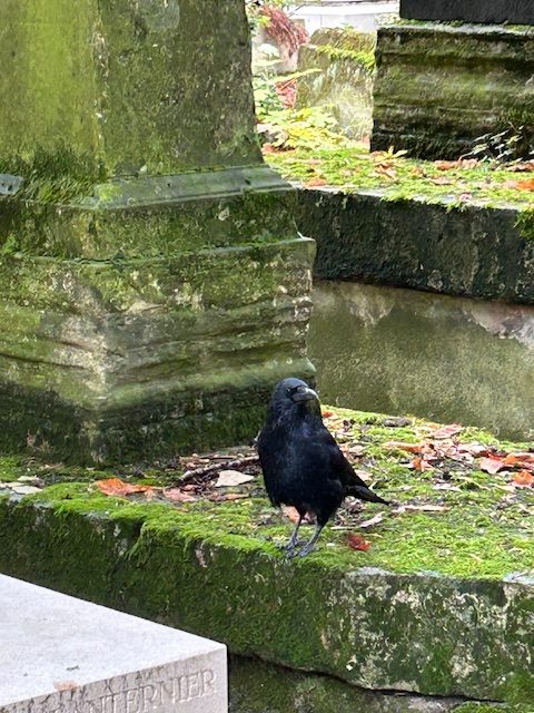 Am nächsten Morgen scheint zwar immer noch keine Sonne, aber es ist trocken. Wir gehen zum Cimitière du Père-Lachaise. Dort liegen viele Promis. Wir besuchen Fréderic Chopin, Oscar Wilde, Jim Morrison, Simone Signoret, Edith Piaf und Sarah Bernhard (Schauspielerin). Riesig, beeindruckend, mystisch, vermoost. Raben beherrschen hier die Szene, sie sind fast genervt über die vielen Spaziergänger. Am Grab von Morrison fragt eine Fremdenführerin mit unwissenden Gästen, ob wir ein Lied von Jim Morrison kennen. Endlich kann ich Pat überzeugen, dass wir auch wieder auf die weltlichen Genüsse achten sollten, wir verlassen den Friedhof und steuern ein paar Lokale in Belleville an. In einer Bar gönnen wir uns erstmal einen Espresso, gegenüber in Supermarchée hole ich ein paar französische Snacks. In einem chinesischen Lokal locken Dim Sung mit Krabben to go. Belleville gefällt mir sehr gut, unaufgeregt, typisch für Paris, gemischte Bevölkerung, viel Treiben auf den Straßen und vor allem: sehr wenig Autoverkehr. Die Fahrräder beherrschen nicht nur diesen hübschen Stadtteil sondern ganz Paris. Autos müssen Fussgänger und Fahrradfahrer achten. Wenn du eine Straße als Fussgänger überquerst, haben die Räder Vorfahrt. Man muss echt aufpassen. Wir bummeln gemütlich weiter Richtung Rue Oberkampf und trinken noch einen Dezi Rotwein in einer Bar. Ich werde müde und gehe alleine zum Appartment zurück um ein wenig zu schlafen, Li und Pat wollen Noten kaufen. Ano ist in der Uni, abends wollen wir wieder zusammen kochen. Li zaubert eine Bowl mit Salat, Hähnchen und Cashews. Ich räume die Küche auf. Gute Arbeitsteilung. Wir lachen viel.