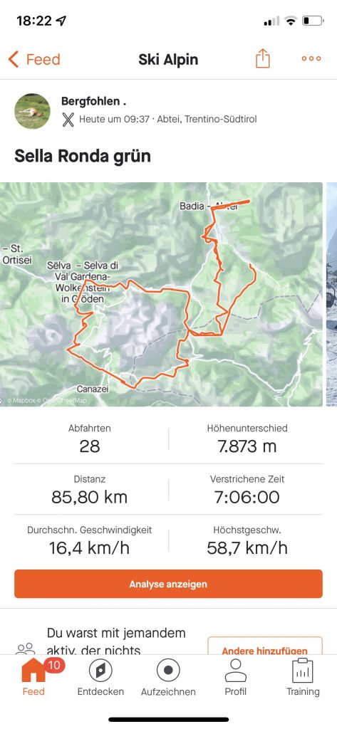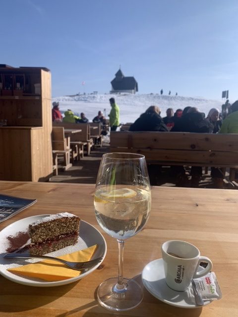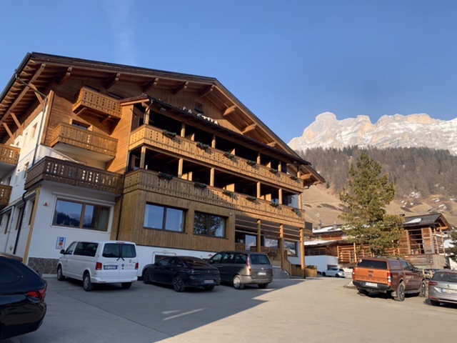 Das war ein herrlicher Abschluss unseres Südtirol Urlaubs. In unserem Hotel genießen wir nach Entspannung in der Sauna das letzte Abendmenu mit Aperitivo und einem leckeren Menu. Unsere Tischnachbarn, eine sehr erfahrene schon ältere Skifahrergruppe aus München gibt uns noch Tipps für die besten Pisten der Dolomiten und so haben wir noch einen netten Austausch.