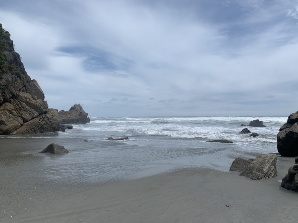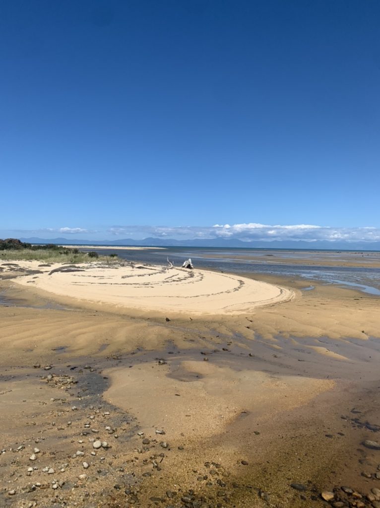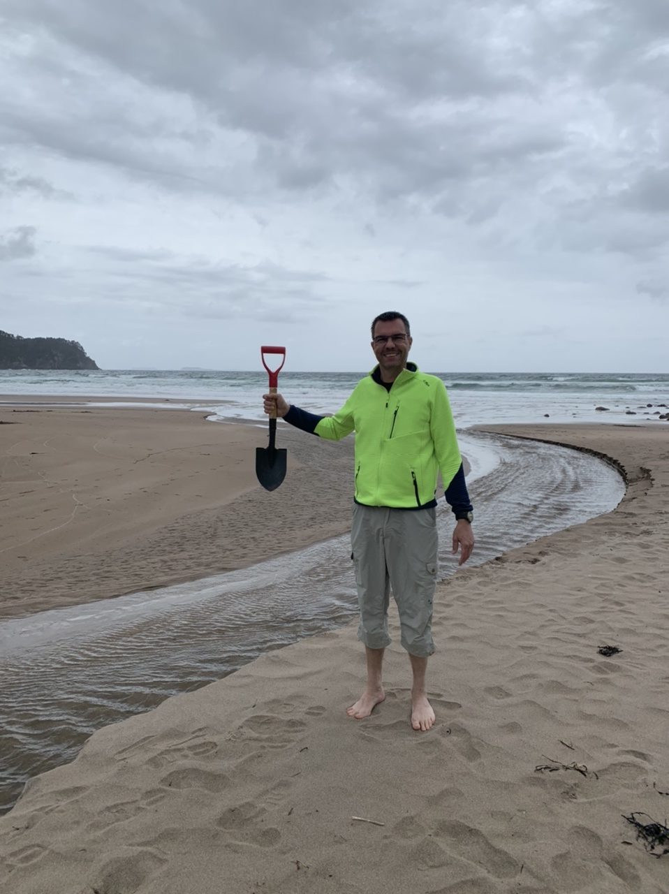 Das nächste Ziel ist der Hot Water Beach. Gespeist von einer unterirdischen Lavaheizung steigt hier Wasser durch den Sand hinauf. Um die Low Tide ist es perfekt um ein Loch in den Sand zu buddeln für den eigenen Hot Tube. Das Wetter ist heute stürmisch und trüb mit hohen Wellen, ideal um im eigenen heißen Loch abzuhängen. So relaxing! Ich könnte ewig drin bleiben, vor allem nach dem kühlen Sprung ins Meer. Ein Paradies. Die anderen Besucher helfen uns sogar beim schaufeln. Schließlich kommt die Flut und überspült unser heißes Loch.