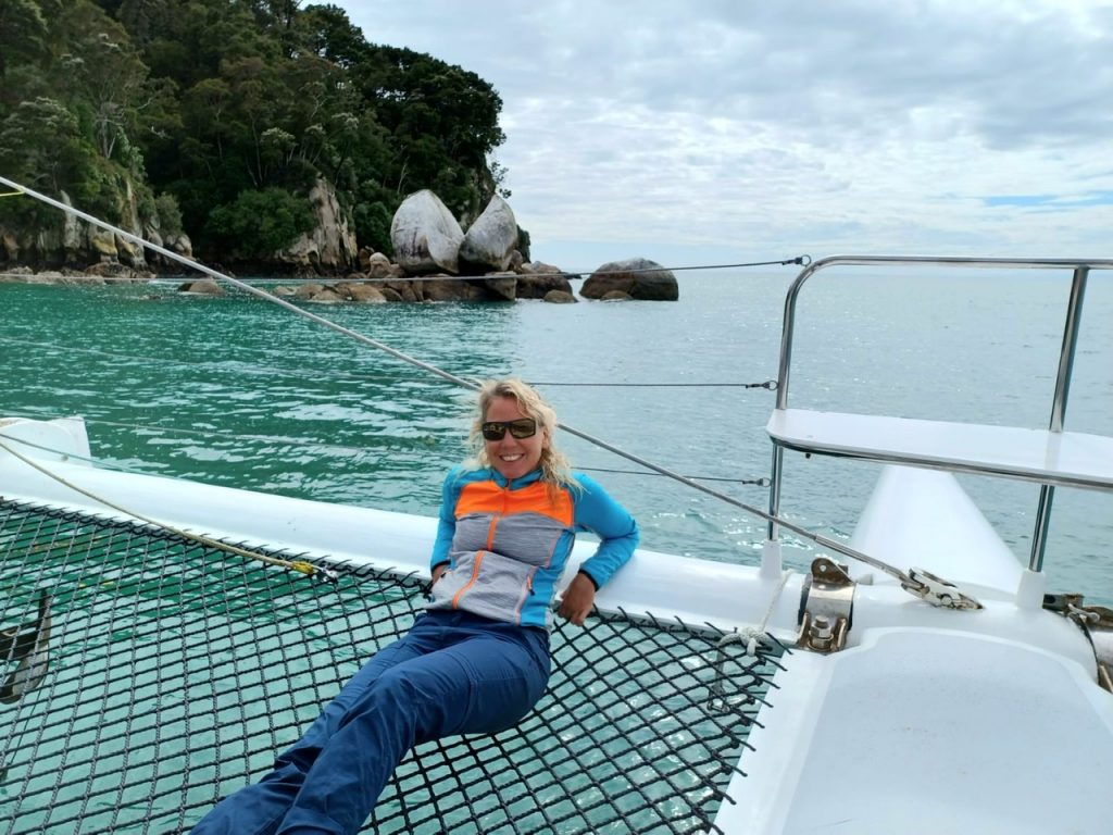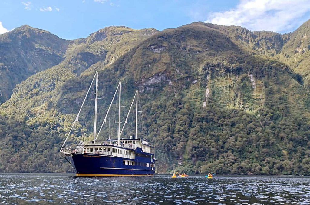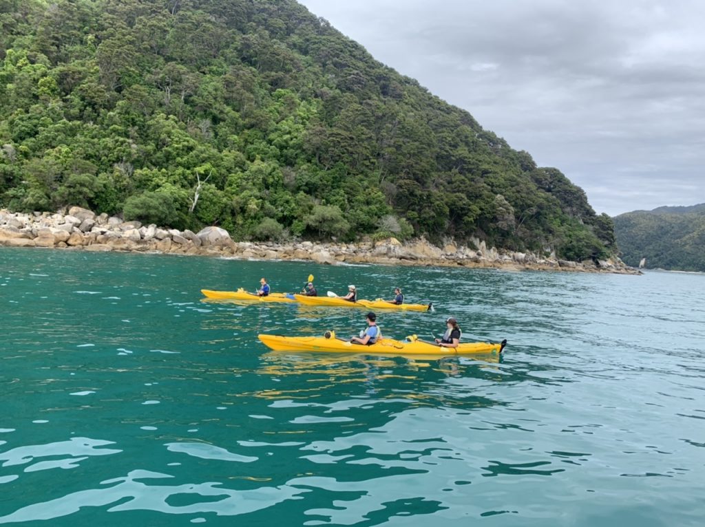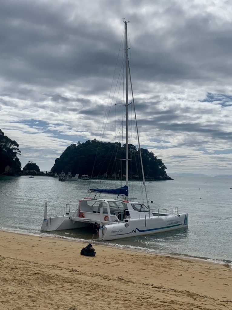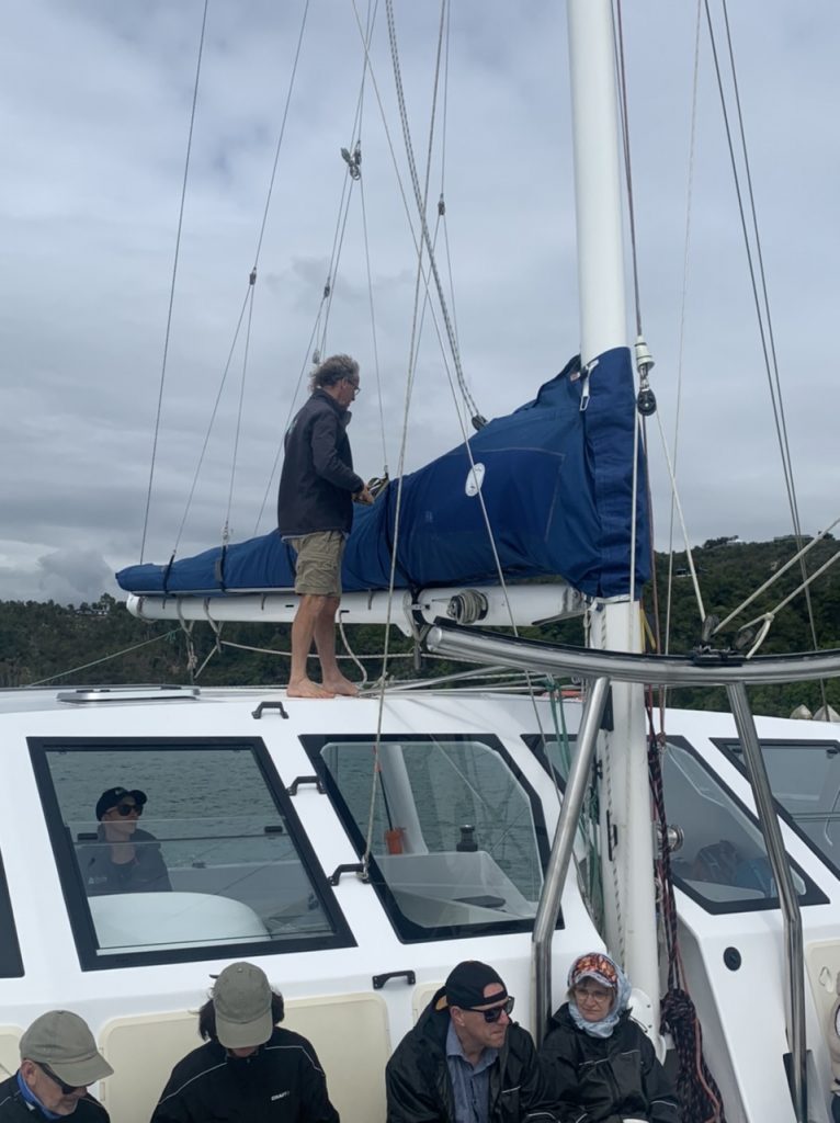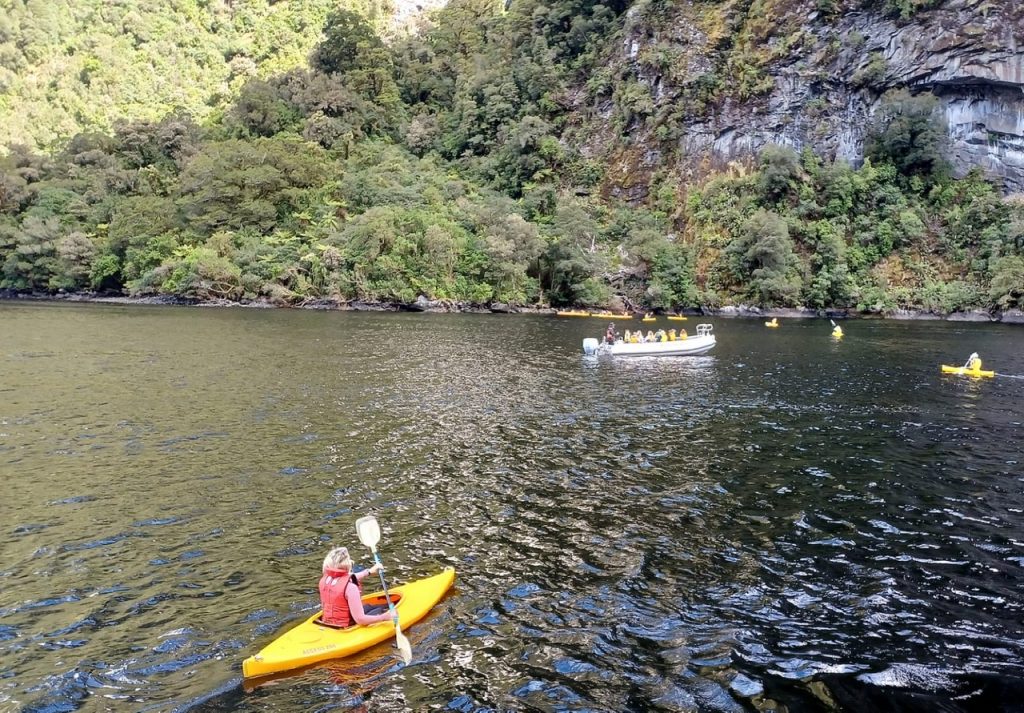Am Samstag erwartet uns ein besonderer Wochenendausflug 😀. Eine Schiffsreise durch den Lake Wanapouri, dann mit dem Bus über die hohen Berge runter zum Doubtful Sound, einer der größten Fjorde Neuseelands. Hier steigen wir in ein elegantes Segelschiff und verbringen die nächsten 20 Stunden in dieser Traumlandschaft. Steile dicht bewachsene Hänge links und rechts, einige Wasserfälle, verzweigte Fjordlandschaften. Nachmittags springen wir in die bootseigenen Kajaks und schwimmen im Fjord (gar nicht zu kalt). Dann geht es raus zur offenen Tasman Sea. Das Segel wird gesetzt, der Wind und die Wellen nehmen zu. Wir sehen faulenzende Robben auf den Felsen und Pinguine, die neben uns herschwimmen. Eine junge Mitarbeiterin erklärt uns total liebevoll viele Details über die Natur und die Tiere. Wahnsinn, was sie alles weiß. Das Abendprogramm sieht neben dem leckeren Buffet zudem Delphine vor. Alle springen von den Tischen um sie zu sehen. 😀