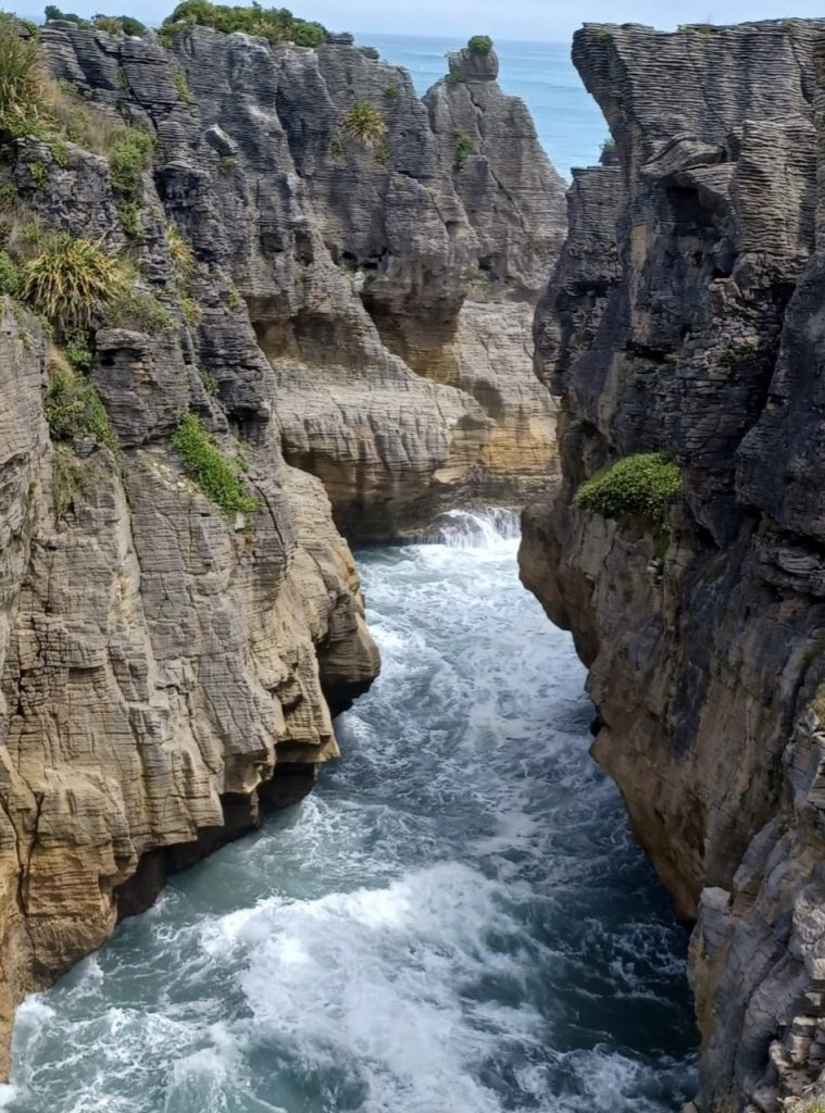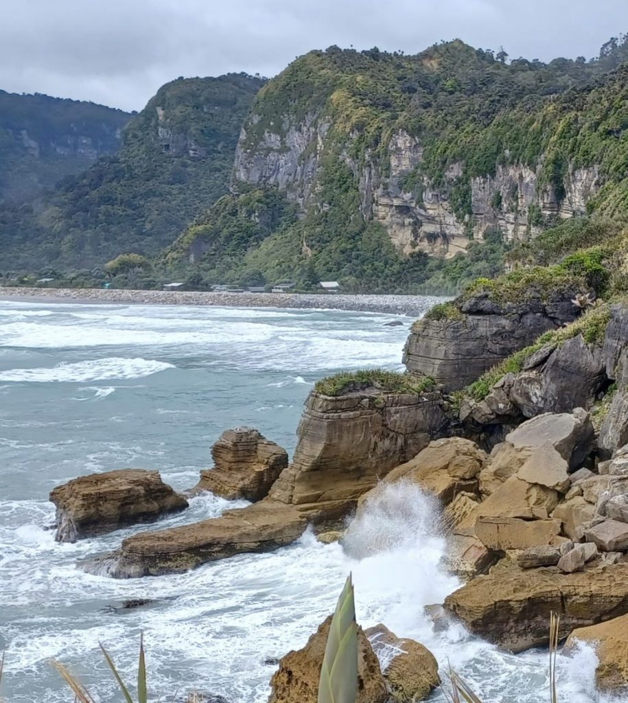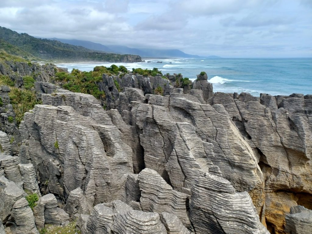 Die Fahrt von Tasman zum Franz-Josef-Gletscher wird mit insgesamt 7h zwar abwechslungsreich aber anstrengend. Viele Berge sind zu überqueren, die Straßen zwar gut aber sowas von kurvig. Pause am tasmanischem Ozean, endlich Westküste. Dort sind umgeben von tollen Stränden mit tobenden Wellen die Pancakerocks. Schichtartig dünn übereinander geformte Limestones, viele Meter hoch, fast wie eine Festung liegen sie direkt am Meer und werden böse von den Wellen umspült. Es haben sich Pools und Löcher gebildet, die gischt spitzt Meter hoch. Sowas von geil! Man könnte ewig zuschauen. Nur leider ruft der Gletscher. Um halb sieben kommen wir beim B&B Holly Homestead von Bernie in der Franz Josef Village an. Ein sehr freundlicher Empfang in einer alten weißen Holzvilla. Sogar die Dusche ist aus Holz. Vom Zimmer im 1.Stock Blick auf die schneebedeckten Gipfel. Ein Traum. Die Stadt wird von Helicopter Unternehmen dominiert, ohne sie kommt keiner auf den Gletscher. Die Straßen dorthin wurden vor ein paar Jahren von einem Unwetter zerstört. Da sich die Gesteinsmassen immer noch weiter bewegen, macht der Bau eines neuen Wanderweges keinen Sinn.
