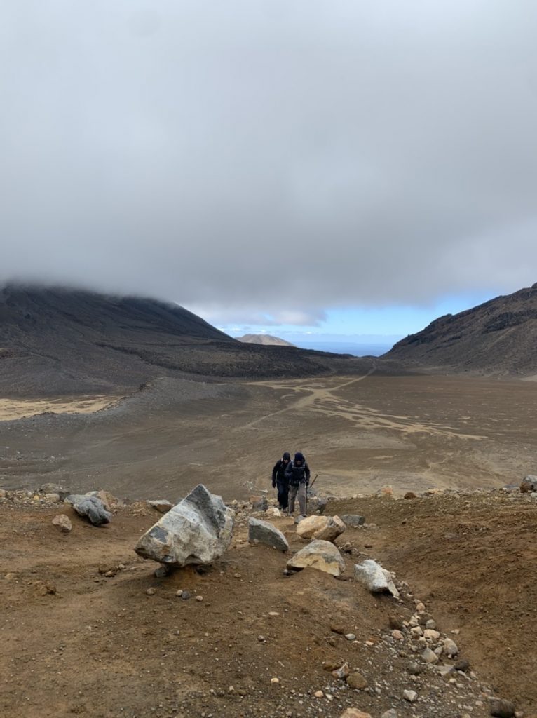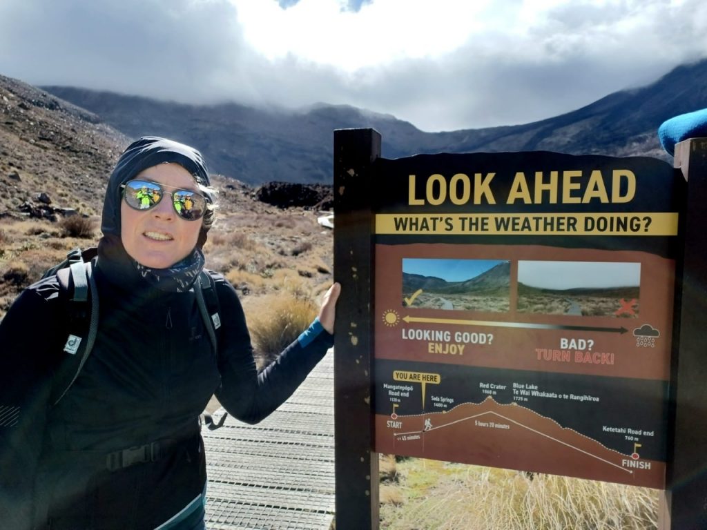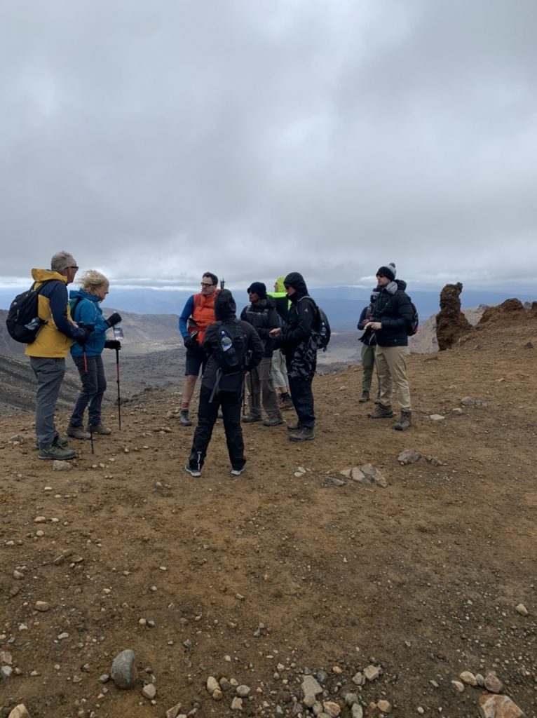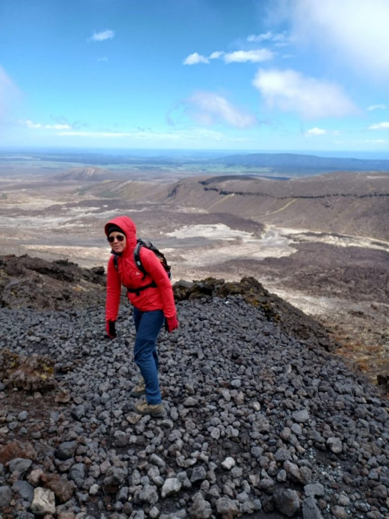Um 8h treffen wir uns bei Adrift Tours zu der Wanderung über den Tongariro Vulkan. Unsere Gruppe umfasst 13 Personen plus 2 Guides. Aufgrund des heftigen Windes werden wir gut ausgestattet mit Handschuhen, Regenhosen und Mütze. Bei Sonne und richtig heftigen Windböen starten wir die 19km Wanderung am Hang durch die Lavafelder der Vulkane. Der letzte Ausbruch war 1996, also noch nicht lange. Gräser, Büsche und Moose wachsen bereits. Der Wind macht es uns echt schwer, die Böen werfen uns fast um. Unser Guide entscheidet ca 1 km vor dem Gipfel, dass es zu gefährlich wäre den Grat bis zur Spitze des Tongariro hochzusteigen. Gestern ist jemand dort abgestürzt und hat sich verletzt. Wir sind alle einsichtig. Der Wind ist wirklich krass und unberechenbar. Also genießen wir die Ausblicke auf die Ostseite und die Vulkankrater und steigen von 1.700 Hm wieder ab. Pause machen wir nach 14 km in einer Schutzhütte. Eine sehr schöne Wanderung in interessanter Natur.