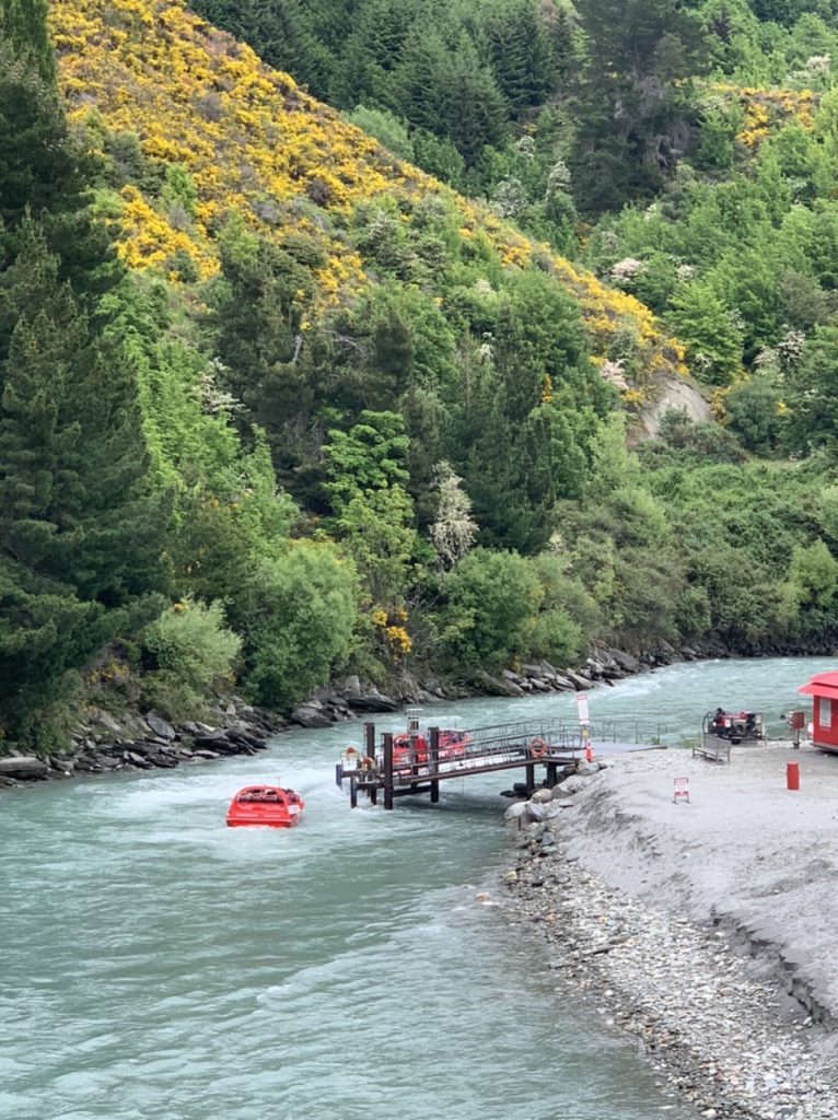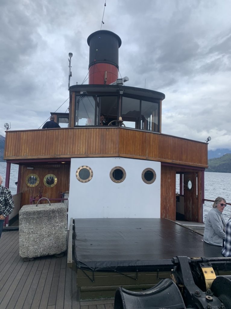 Abends kommen wir nach einem Lunch-Stop bei einer versteckten Forellen- und Lachszucht mit Café, vielen Kurven und einem steinigen verregneten Wasserfall in Queenstown an. Ein kleines Städtchen am großen Z-förmigen Lake Wakatipo. Das Heartland Hotel hat eine super Lage oberhalb der Stadt aber enttäuschende Innenausstattung. Da es regnet essen wir im Hotel. Am Morgen erkunden wir die Stadt, laufen direkt zum Wasser und finden im Vudu Café ein leckeres Frühstück mit Pancakes und Flat White. An der Wharf liegt das Dampfschiff MSS Earnslaw, das uns abends mitnehmen wird. Durch die Innenstadt und den botanischen Garten geht’s zurück. So viel gibt es nicht zu entdecken daher entscheiden wir uns das Goldgräberstädtchen Arrowtown in den Bergen zu besuchen. Im Chinese Village stehen noch die alten Hütten der chinesischen Goldgräber. Die Stadt sieht aus wie eine Westernstadt mit Pubs und altem Postoffice. Sehr witzig. Der Fluss lädt zum Spaziergang unter alten Weiden ein. Am Canyon des Shotover River kann man mit dem Speedboot fahren, wir schauen von der hübschen Terrasse der Brauerei zu. Abends bringt uns das Dampfschiff zur einsam gelegenen Walter Peak Farm auf der anderen Seeseite. Im Schiff hat man von oben Sicht auf die Turbinen und die Heizer, die ordentlich Kohle in die Öfen schaufeln. Dafür gehts ganzschön ab. Auf der Farm erwartet uns ein umfangreiches frisches Barbecue mit Salaten, Fisch und Fleisch. Die Farmerin demonstriert im Anschluss wie ihre Hunde die Schafe einfangen. Ein toller Abend wenn auch sehr touristisch.