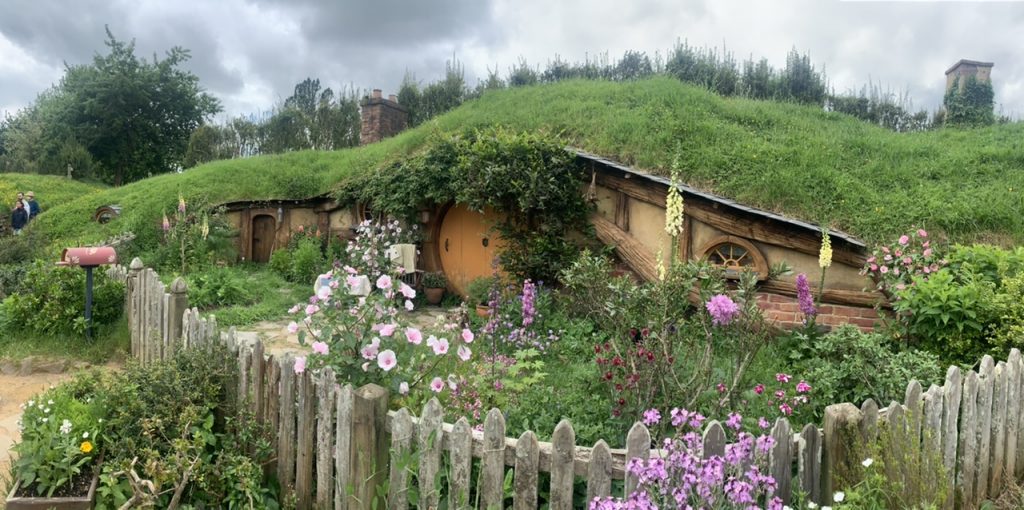 Am Montag verlassen wir die Paoanui Lodge und fahren nach Matamata zum Hobbiton Movie Set. Auf der Farm der Familie Alexander wurden die Hobbit Filme und Herr der Ringe gedreht. Eine kleine gutgelaunte Chinesin mit perfekten Englisch und großem Fachwissen führt uns an den Hobbit Cottages entlang. Es gibt 44 Häuschen, leider alle nur mit Fakefassade und keine tatsächlich eingerichteten Wohnräume. Ich war bisher kein Fan aber werde mir die Filme jetzt mal anschauen. Im Green Dragons Inn bekommen wir einen Cider.