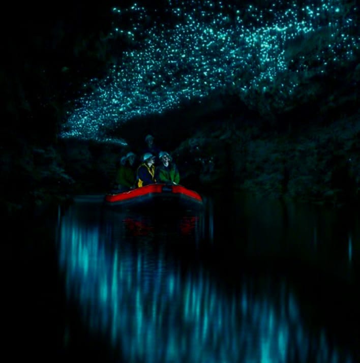 Gestern besuchten wir die Glowworm Caves von Waitomo. Das lag 2 Fahrtstunden von Rotorua entfernt in einer schönen Bergregion. Der Abschied von Vivien in Redwood B&B ist uns schwergefallen. Sie hat uns noch viel über ihre Heimat Malaysia und ihren persönlichen Weg nach Neuseeland erzählt. In den Höhlen gibt es wieder eine große Cathedral mit tropfenden Stalaktiten und Stalakmiten. Die Akustik ist sehr gut, aber keiner will vorsingen. Unter der Haupthöhle ist eine weitere Höhle mit See. Unser Boot gleitet in völliger Dunkelheit unter Tausenden von blau leuchtenden Glühwürmchen hindurch. Alle sind still. Faszination pur. Die kleinen Würmchen sind Pilzmückenlarven, die nur hier leben.