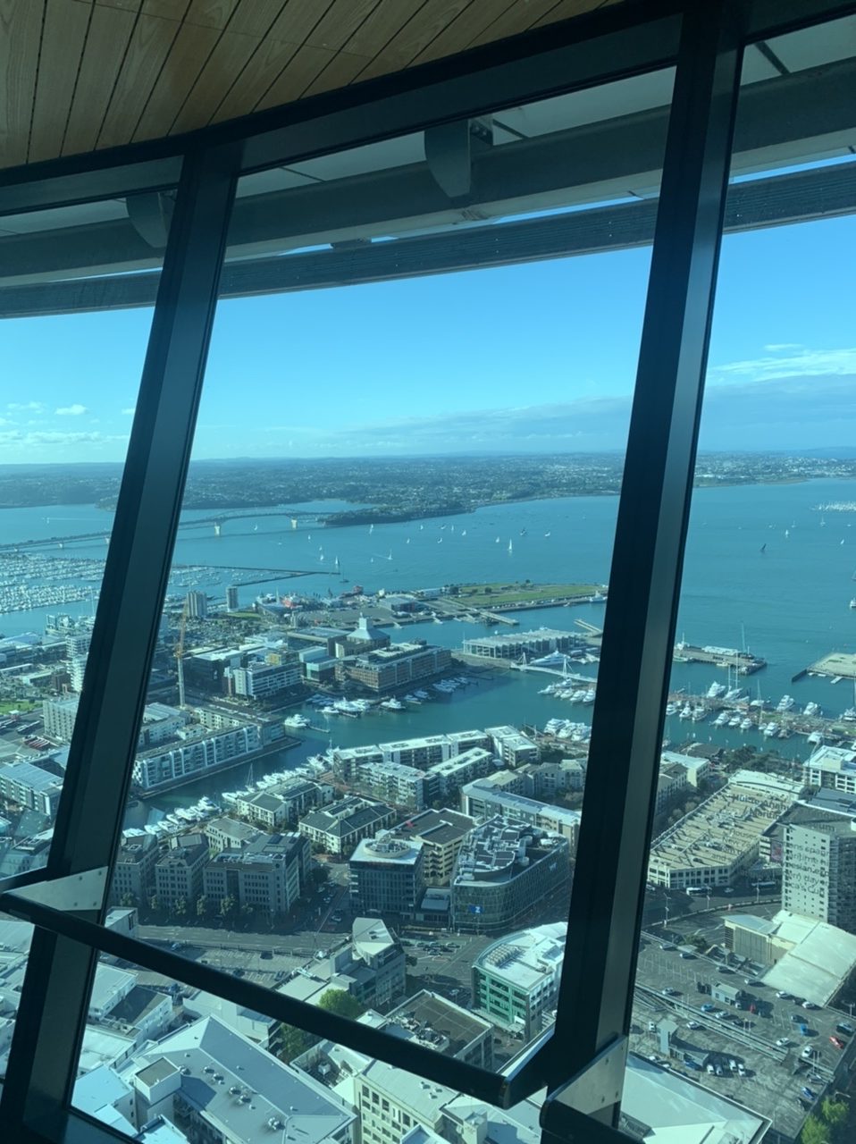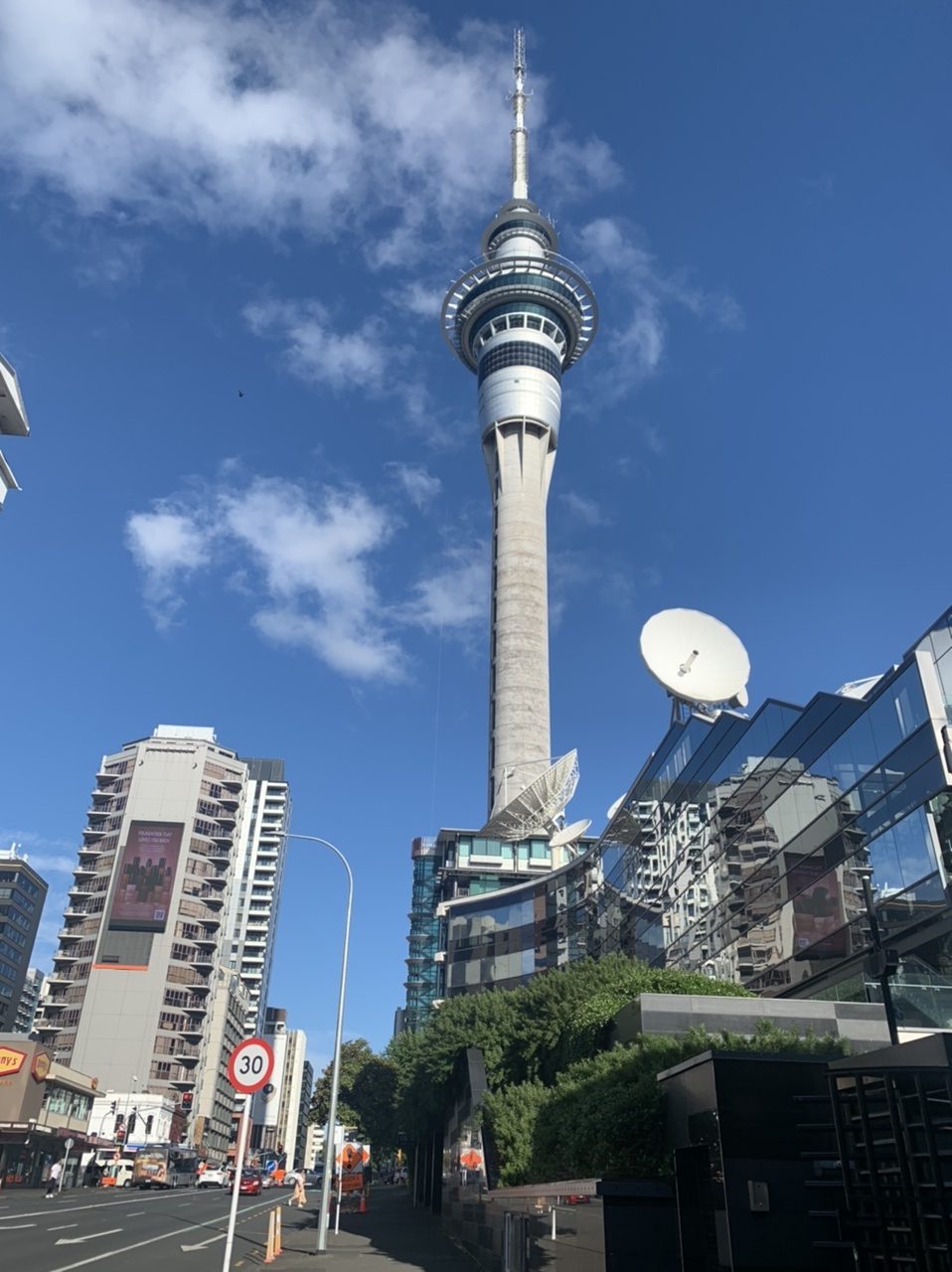 Gut gelandet und Einreise ohne Stress. Ein Shuttle hat uns abgeholt und nach Auckland gebracht. Das Ponsonby Manor ist ein hübsches weißes viktorianisches Haus mit Garten. Da unser Zimmer so früh noch nicht fertig ist, laufen wir erstmal die Hauptstraße entlang und suchen ein Café. Im Innenhof frühstücken wir mit Flat White, Brownie (J.) und Brocoli-Spinat- Soufflé (M.) Der Jetlag ist jetzt echt fies, totale Müdigkeit macht sich breit. Also erstmal ein Schläfchen . Um vier Uhr erwachen wir wieder zum Leben und laufen in die Innenstadt von Auckland zum Skytower. Geniale Aussicht von hier oben (328m Gesamthöhe, Plattform 186m) auf den Hafen und die vorgelagerten Inseln. Viele Hügel von erloschenen Vulkanen. Im Hafen genießen wir ein Bierchen auf der quirligen Terrasse des Holimoli und zurück in unseren Stadtteil Ponsonby finden wir einen Inder mit typischen Streetfood.